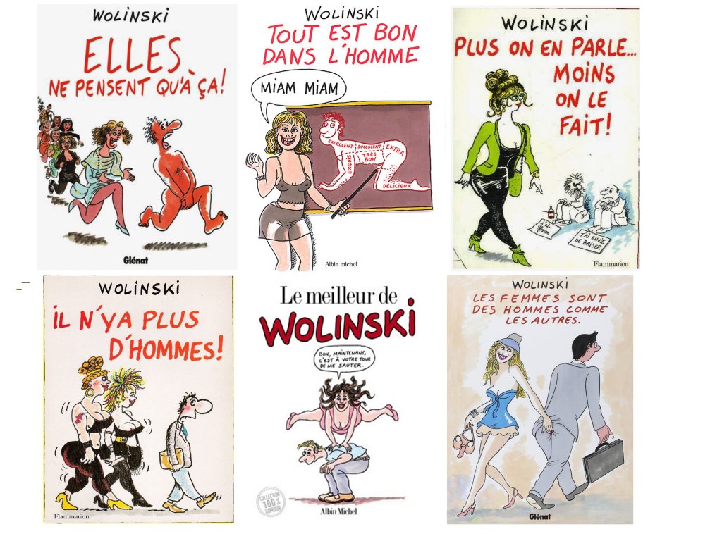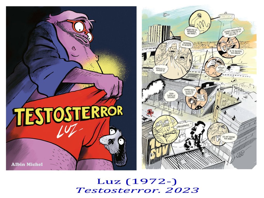 A noter cependant, quelque espoir du côté de la critique hilarante et acerbe du masculinisme toxique et du virilisme contemporain, par Luz et Sattouf, comme l’émergence de grandes caricaturistes comme Coco et Catherine Meurisse, qui entre autres, féminisent le regard longtemps trés genré de l’exercice de caricature.