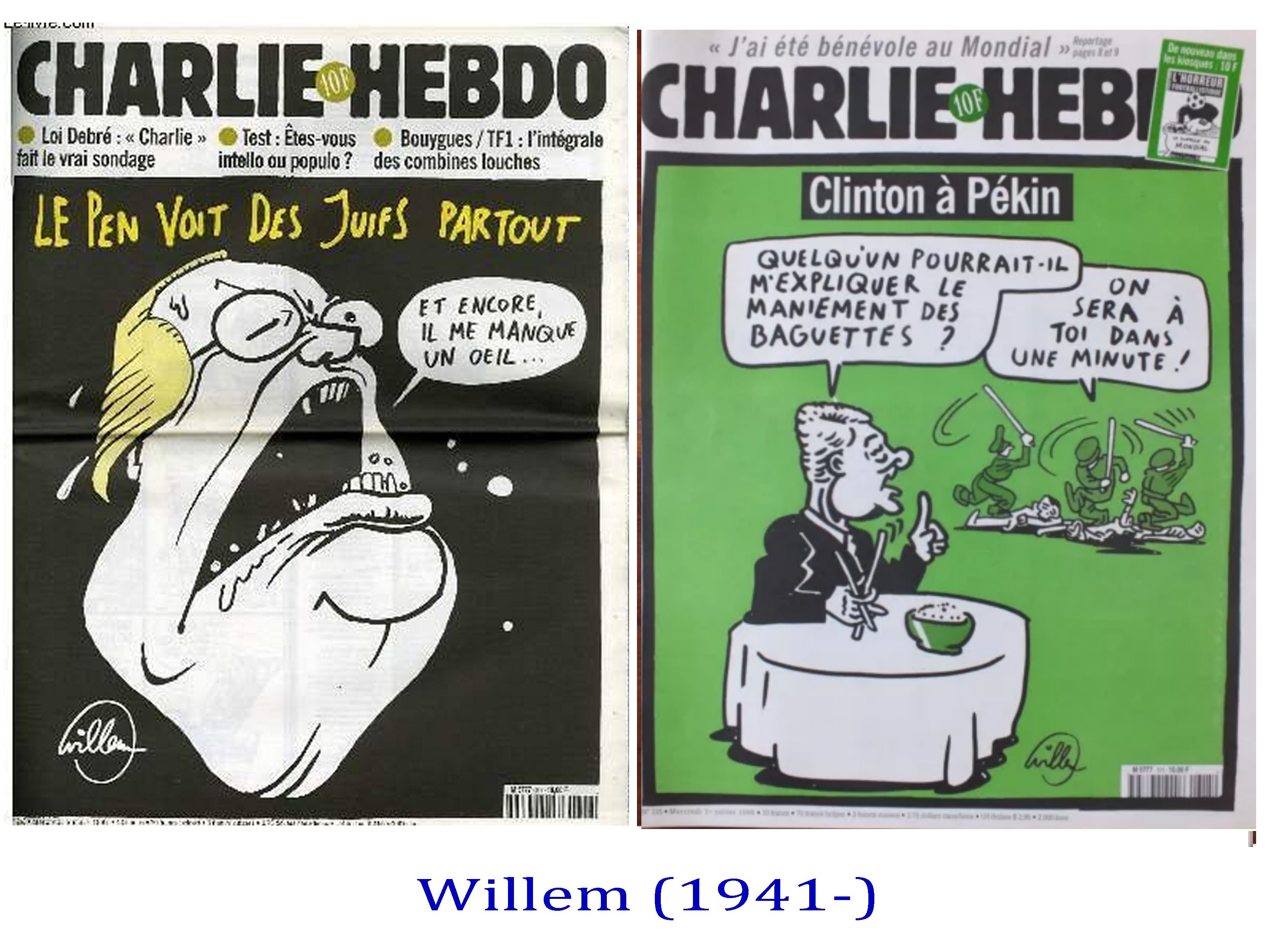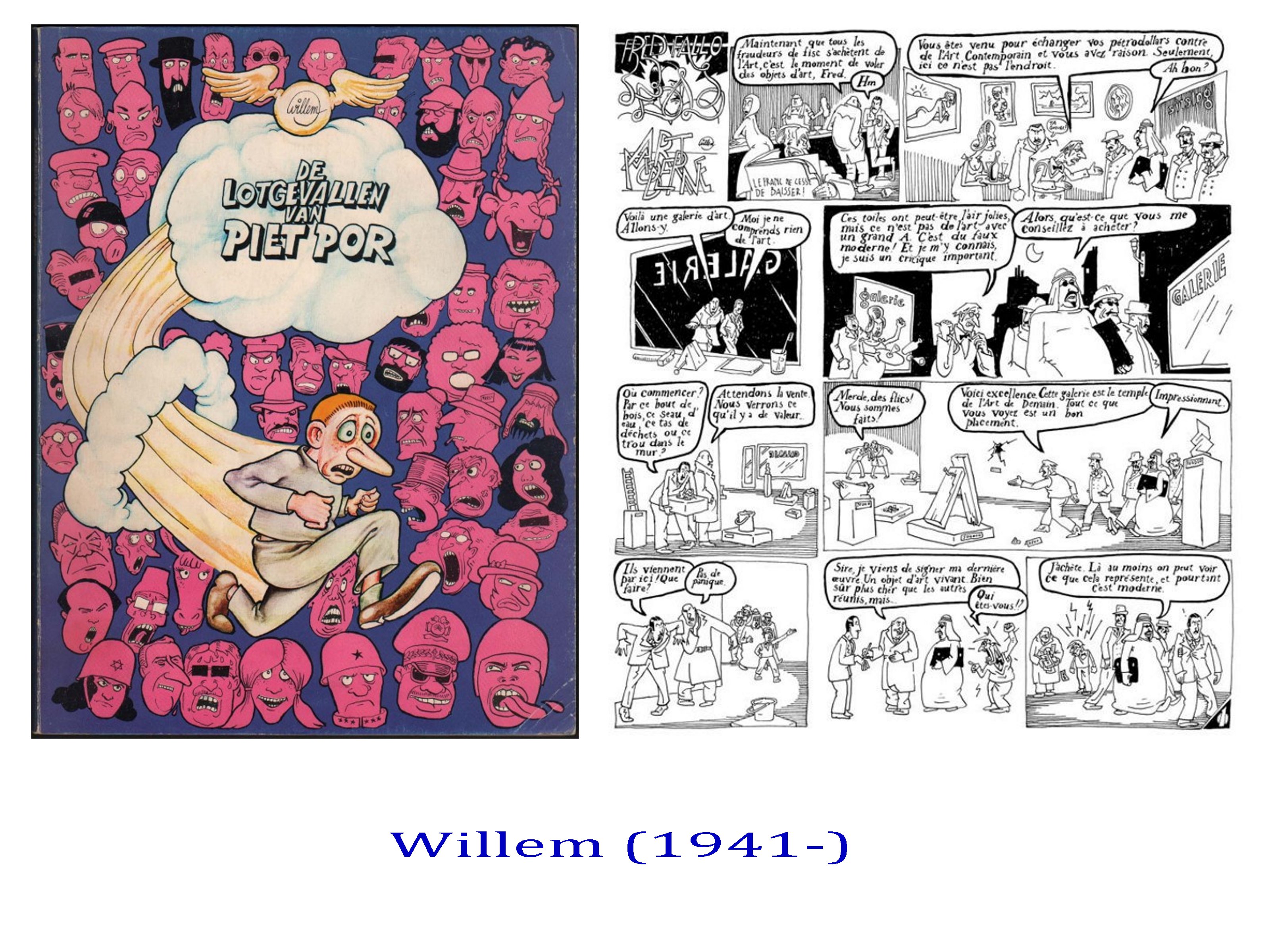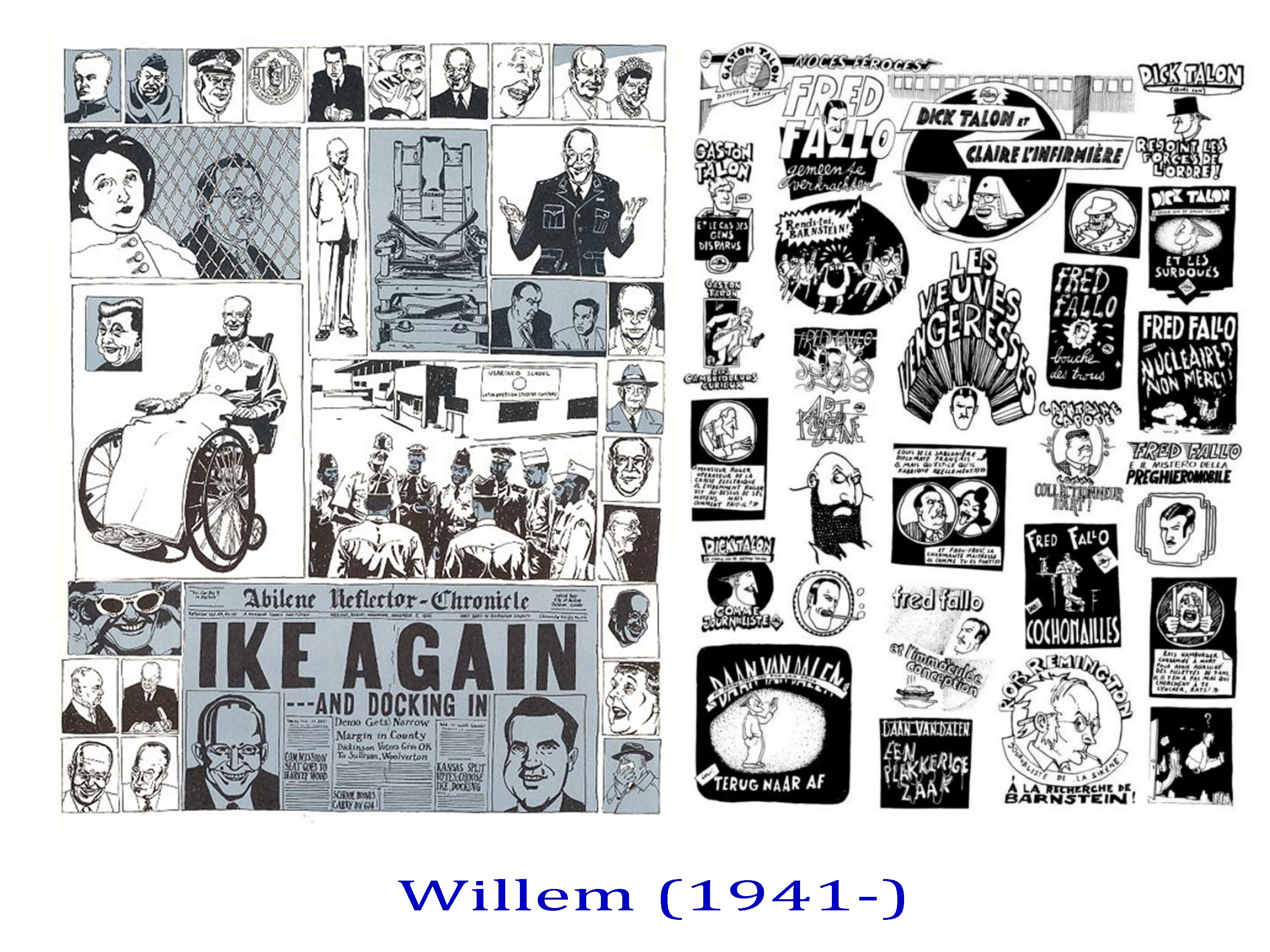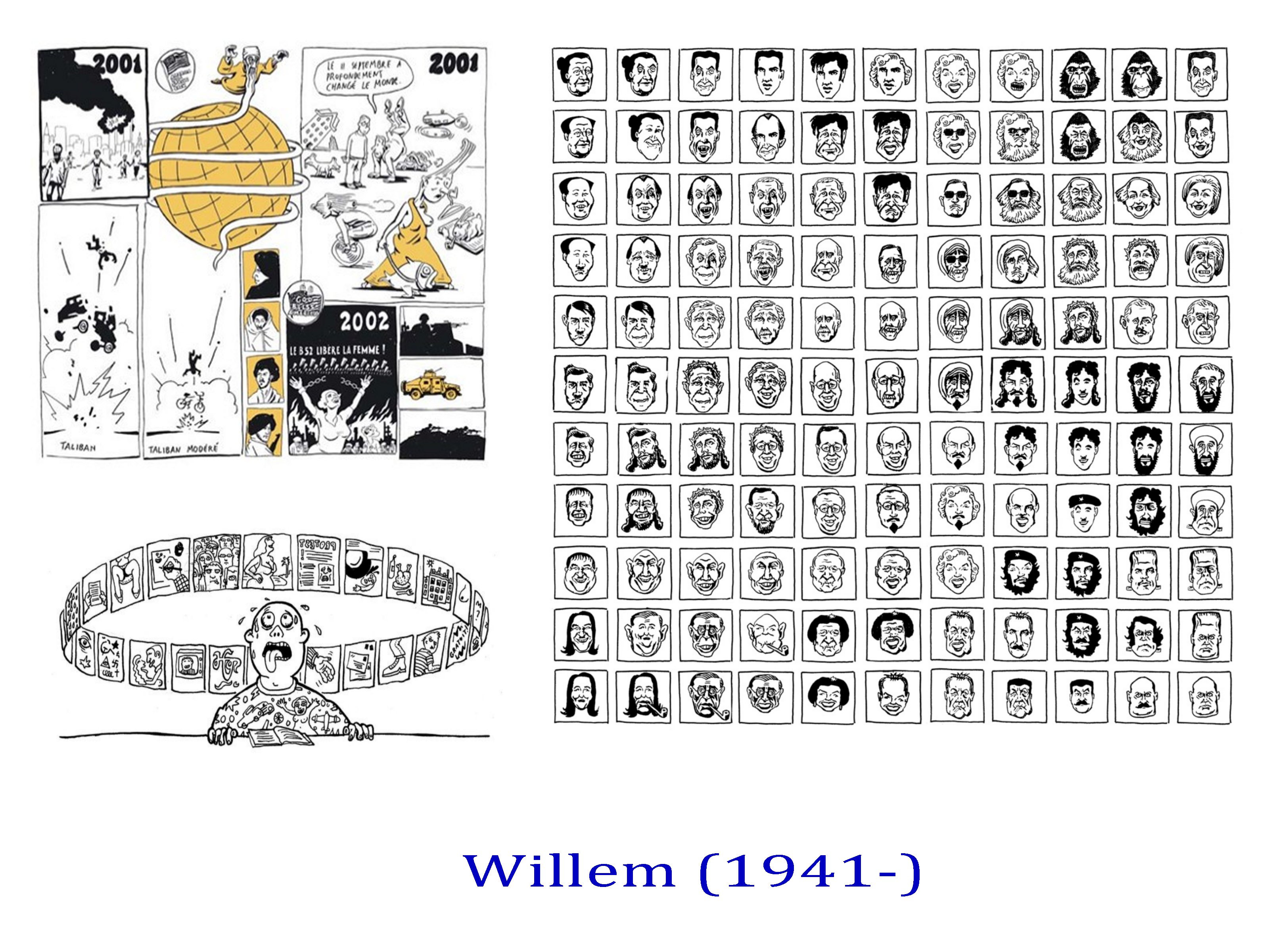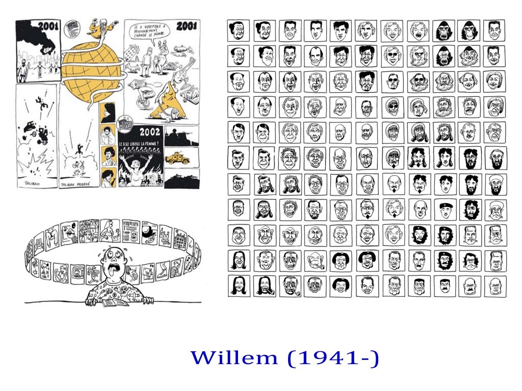 On notera comme une exception le trait inventif de Willem, comme son travail dur les ombres et le modelé, unique et d’une grande puissance expressionniste. Willem, tenant d’ailleurs une sorte de chronique des recherches graphiques de la presse underground, depuis des années dans Libération.