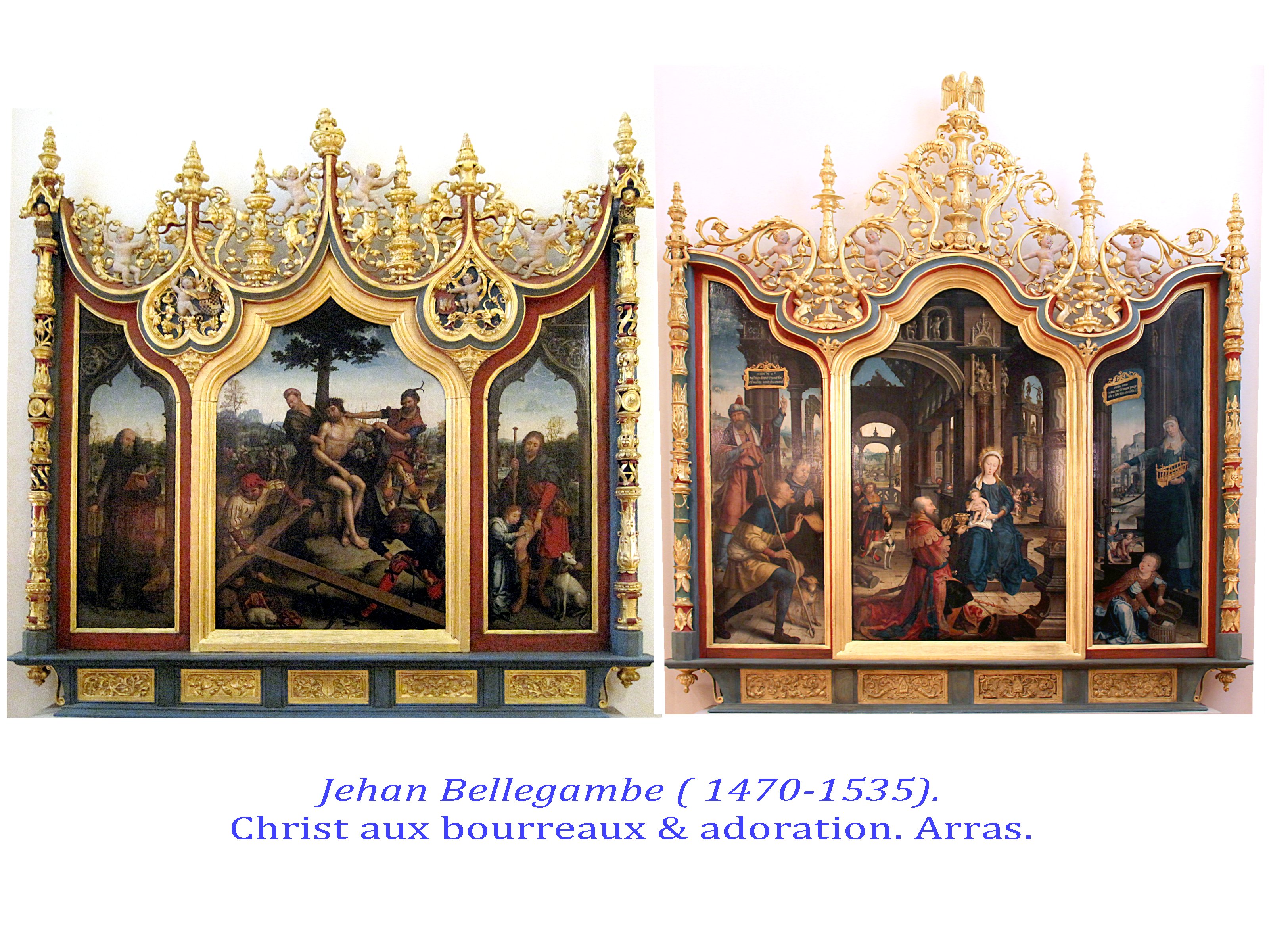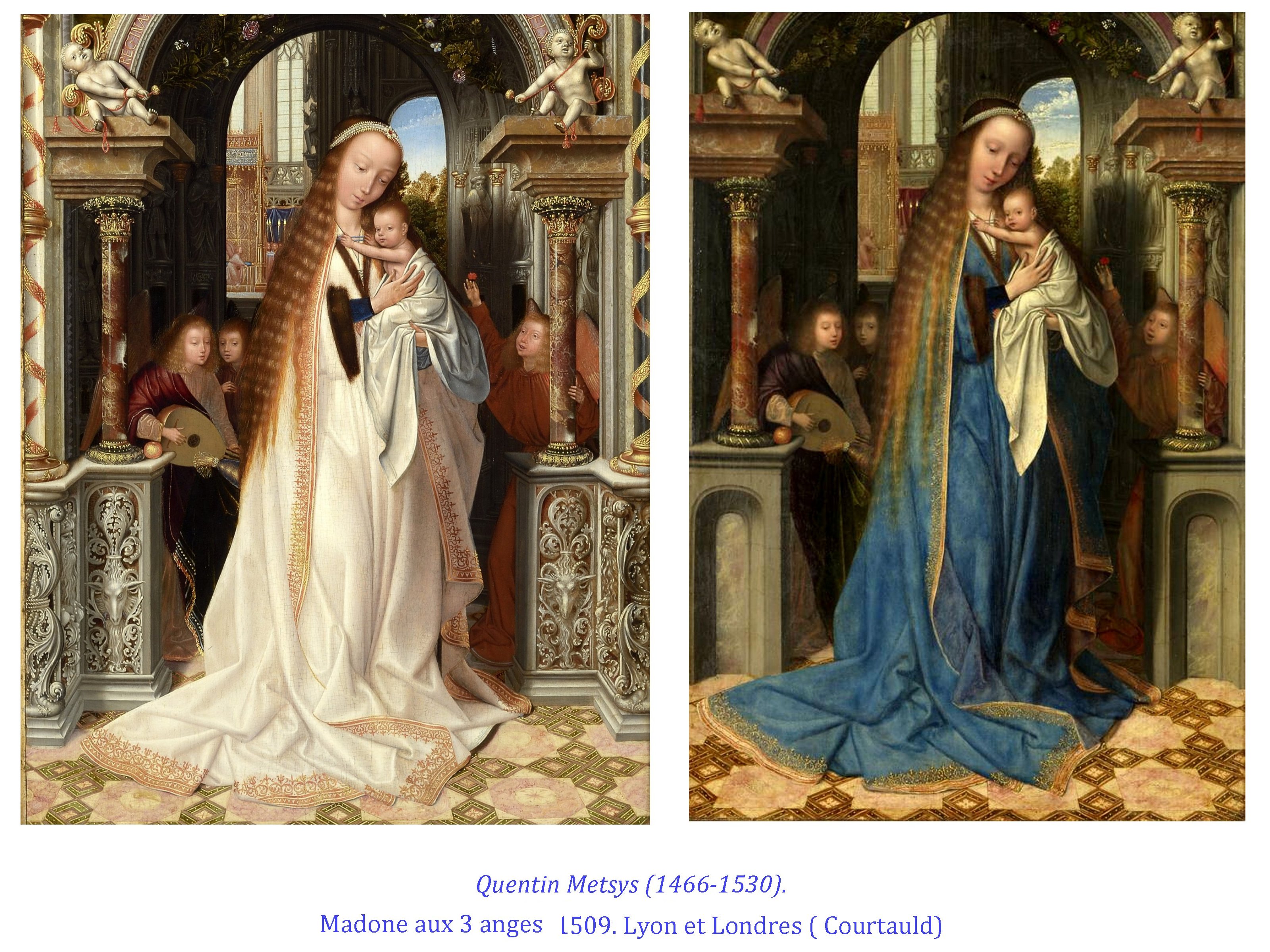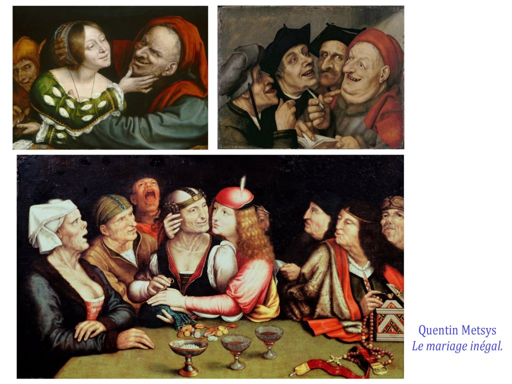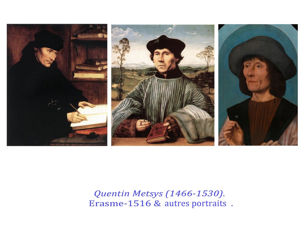 On voit clairement, avec Metsys par exemple, la continuation d’une esthétique sacrée, autour de ses madones et Madeleines, mais aussi l’exploration des turpitudes humaines, comme de points de vue bien terrestres et subjectifs ( le Christ crucifié sur le Golgotha).
