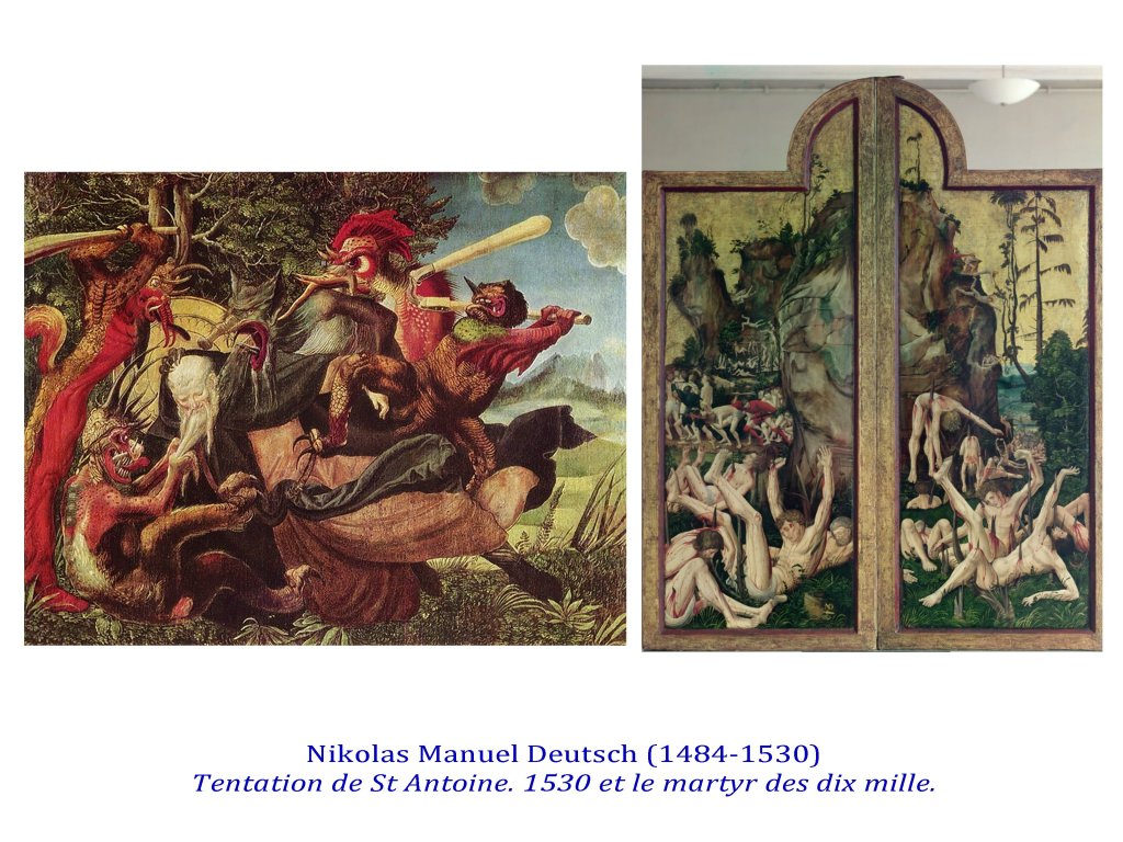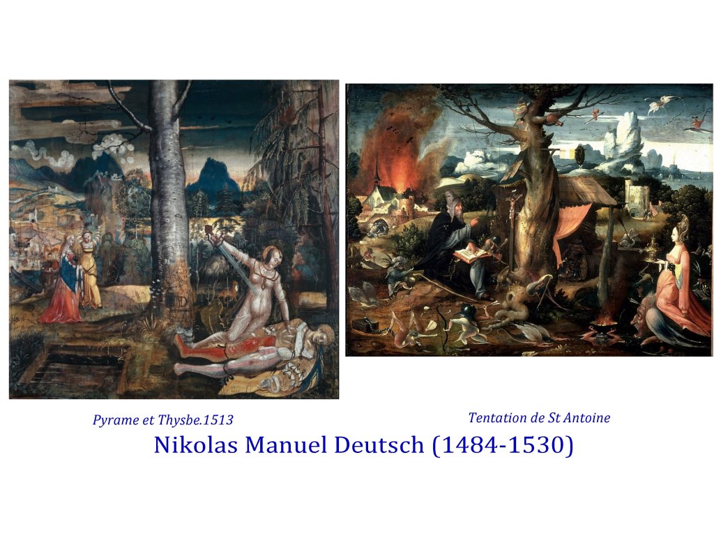 Le cas le plus ultime est celui de Nikolas Manuel Deutsch, qui peintre virtuose glisse vers une sorte d’expressionisme mélancoliques pour finir iconoclaste virulent, non sans avoir réalisé la plus grande danse macabre de l’histoire, dont il ne reste qu’une copie.