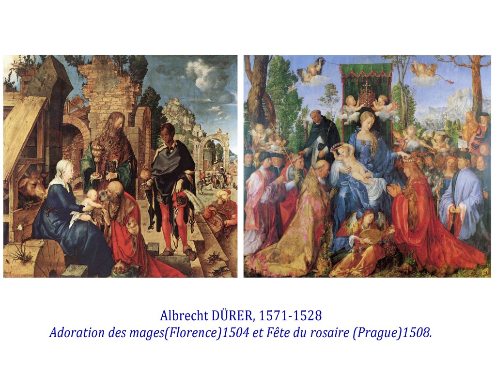 D’une manière plus générale, les artistes « germaniques » restent attachés à une traduction directe du sensible et des perceptions, se défiant des idéalisations et modélisations italiennes, jusque dans la conception de la perspective, abordée par des moyens mécaniques ( les machines de Dürer) et non pas par des constructions mathématiques.