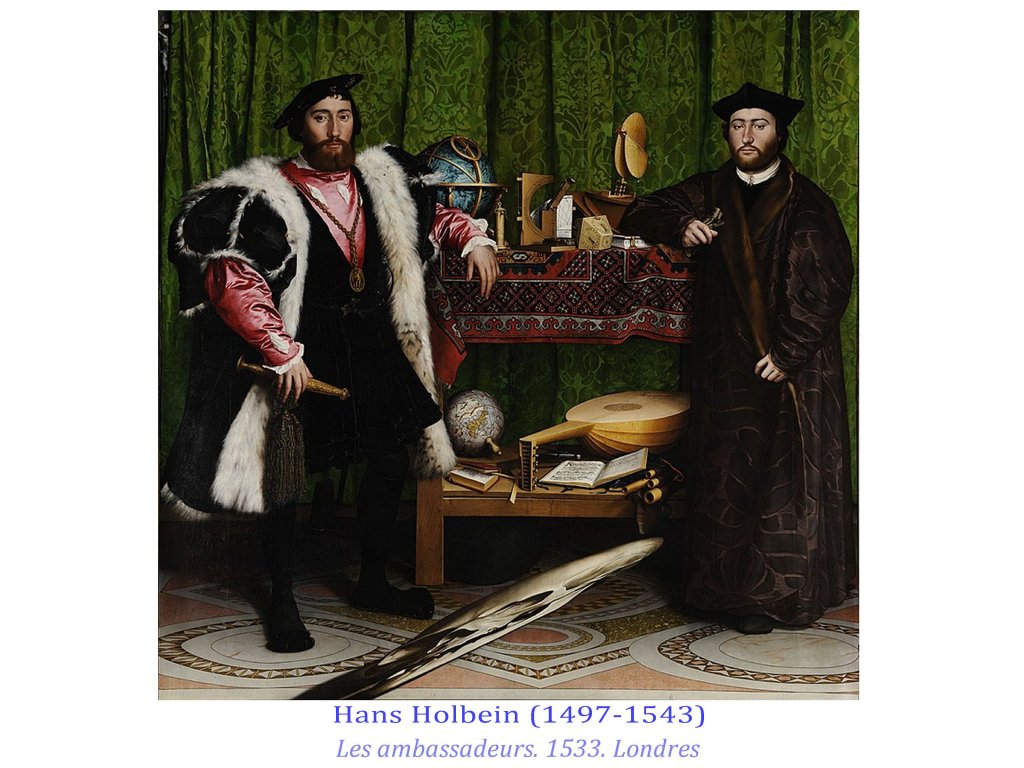 Holbein prend conscience de l’illusion et des trompe-l’oeil possibles, ainsi déconstruit-il à plusieurs reprises la pratique de l’imitation , tout en étant l’un des meilleurs acteurs de cette approche du réel, de ses proches.