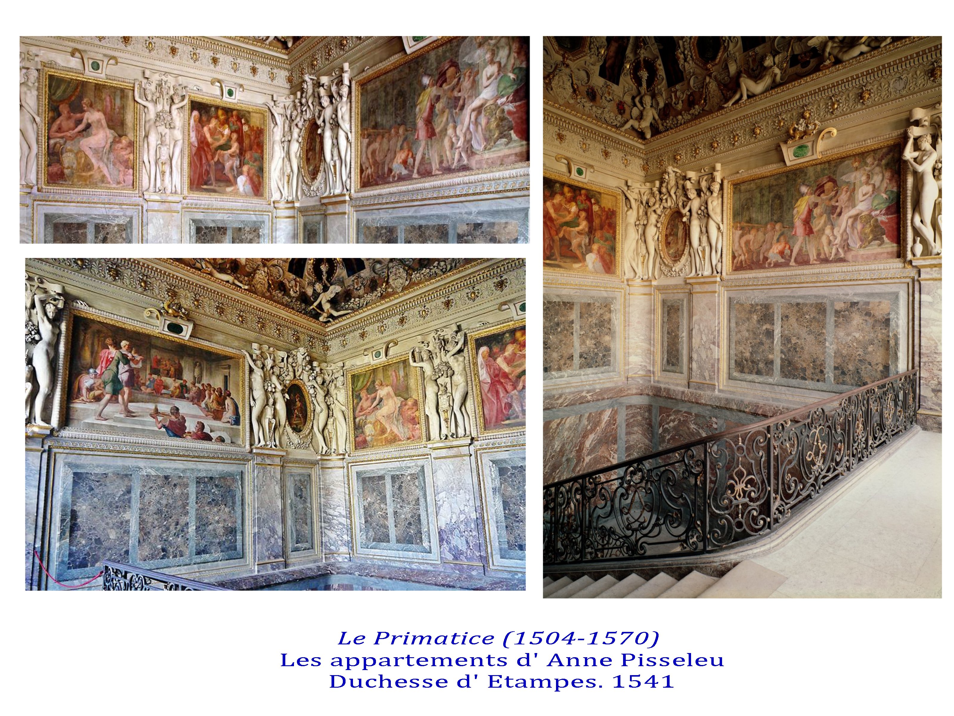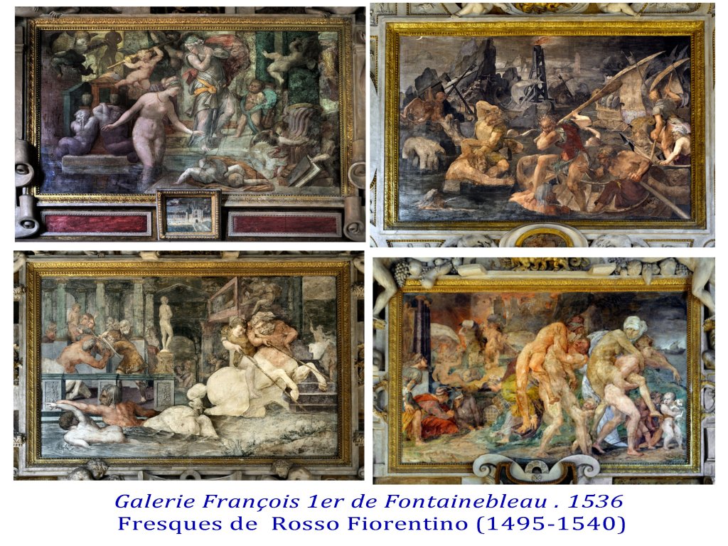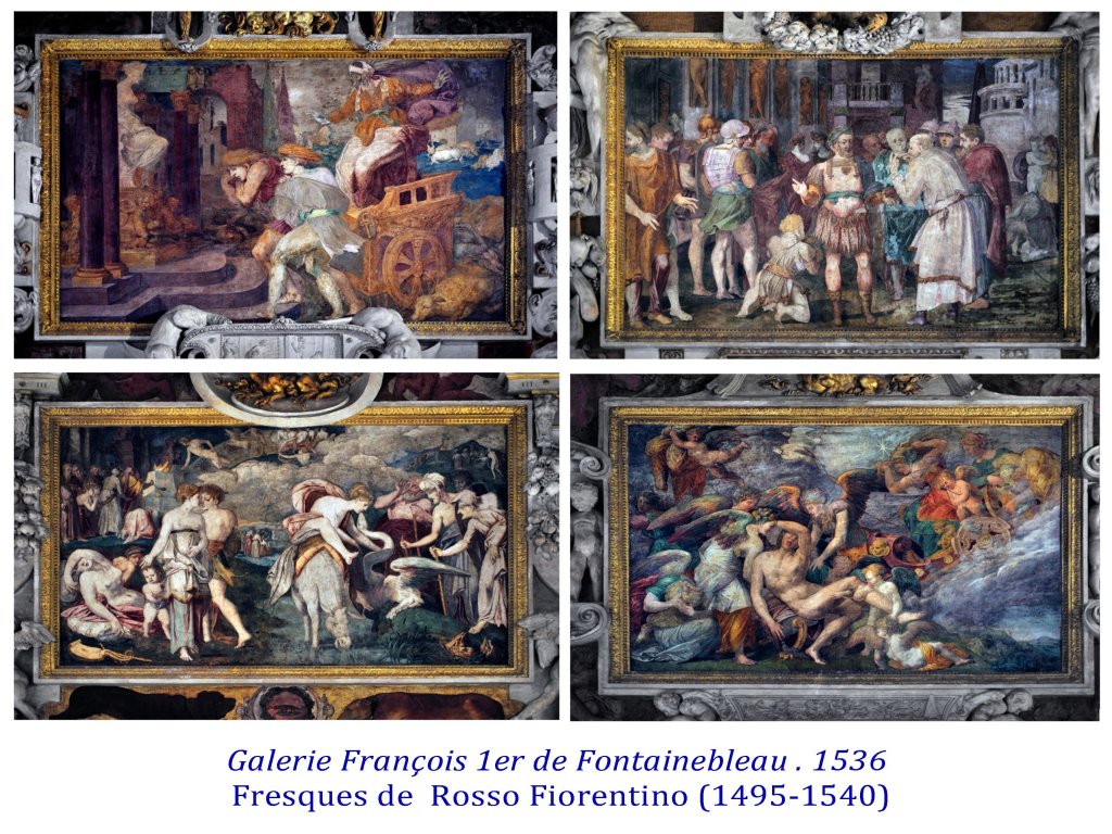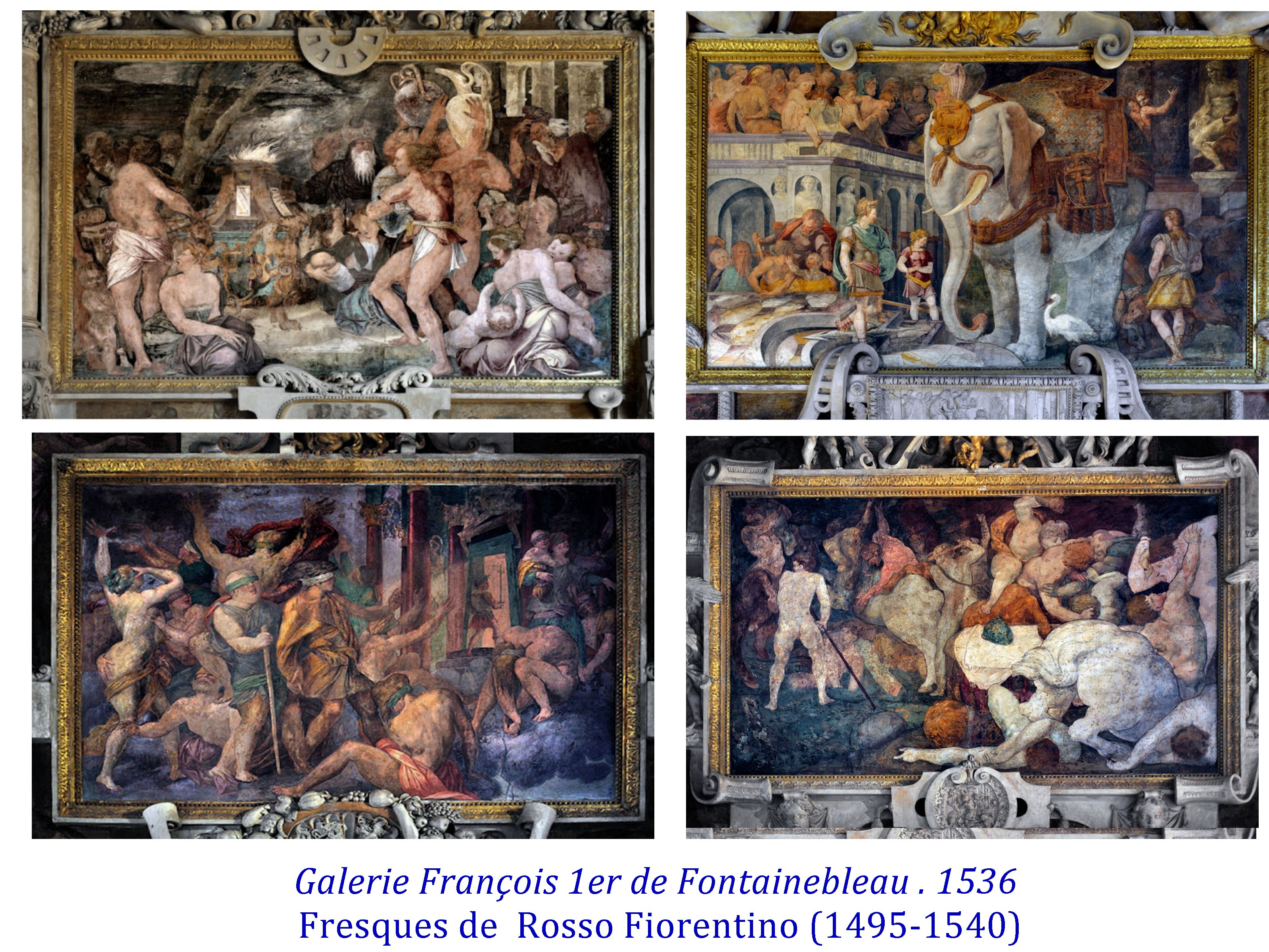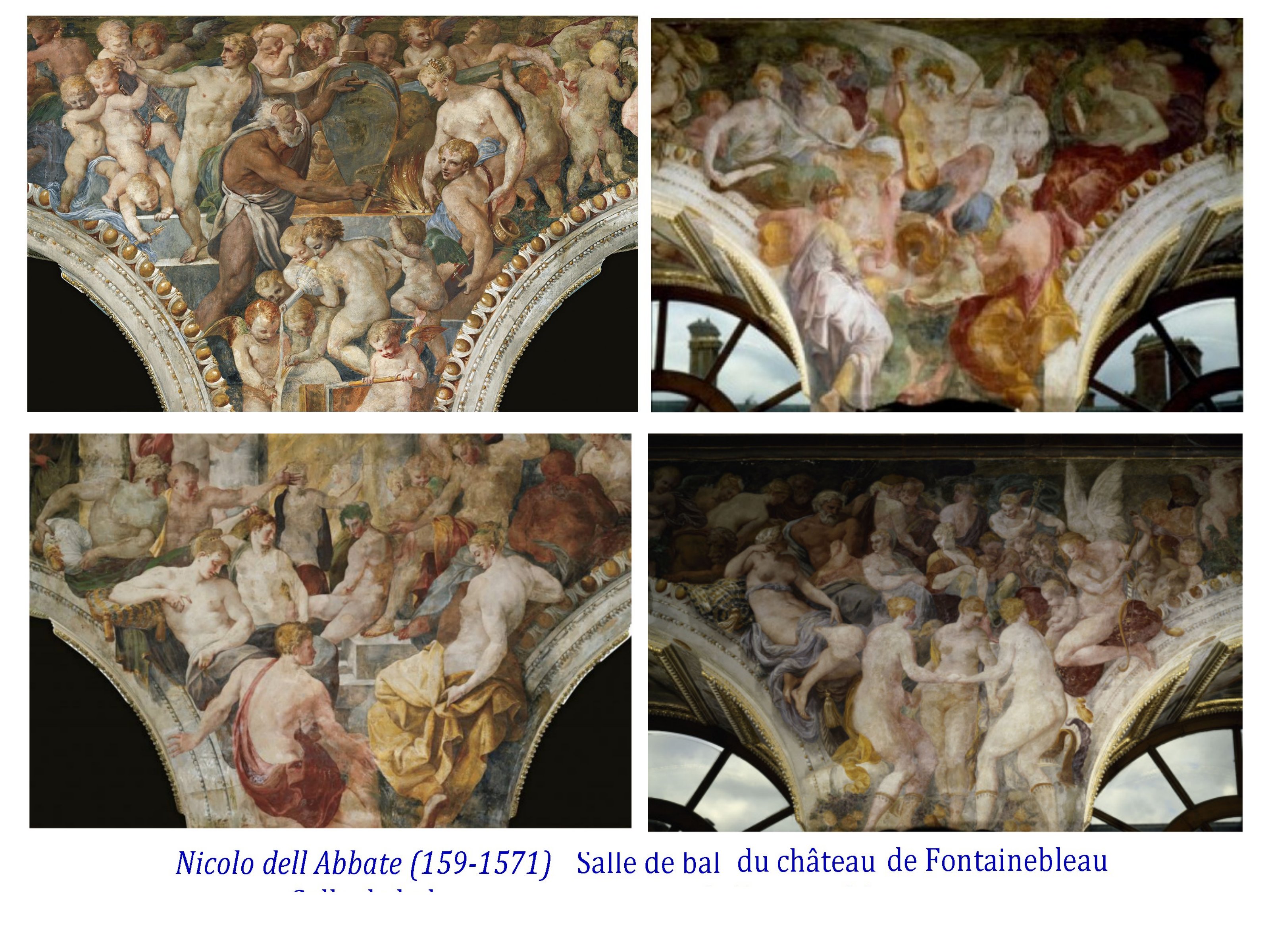 Autre élément notable de cette transition, les déplacements de la cour et les hésitations dans le choix des châteaux et résidences, le Louvre, Fontainebleau, Amboise, sans compter les résidences temporaires et les demeures somptueuses des maîtresses royales, ces déplacements nuisant au déploiement de décors pérennes, au bénéfices des tapisseries ( somptueuses mais fragiles, comme la tapisserie des Valois et le cycle de Caron sur Artemise d’ Halicarnasse ( comme archétype des reines veuves et courageuses, éducatrices de rois, Eléonore d’ Aquitaine, Blanche de Castille, Jeanne d’ Albret, Catherine de Médicis).