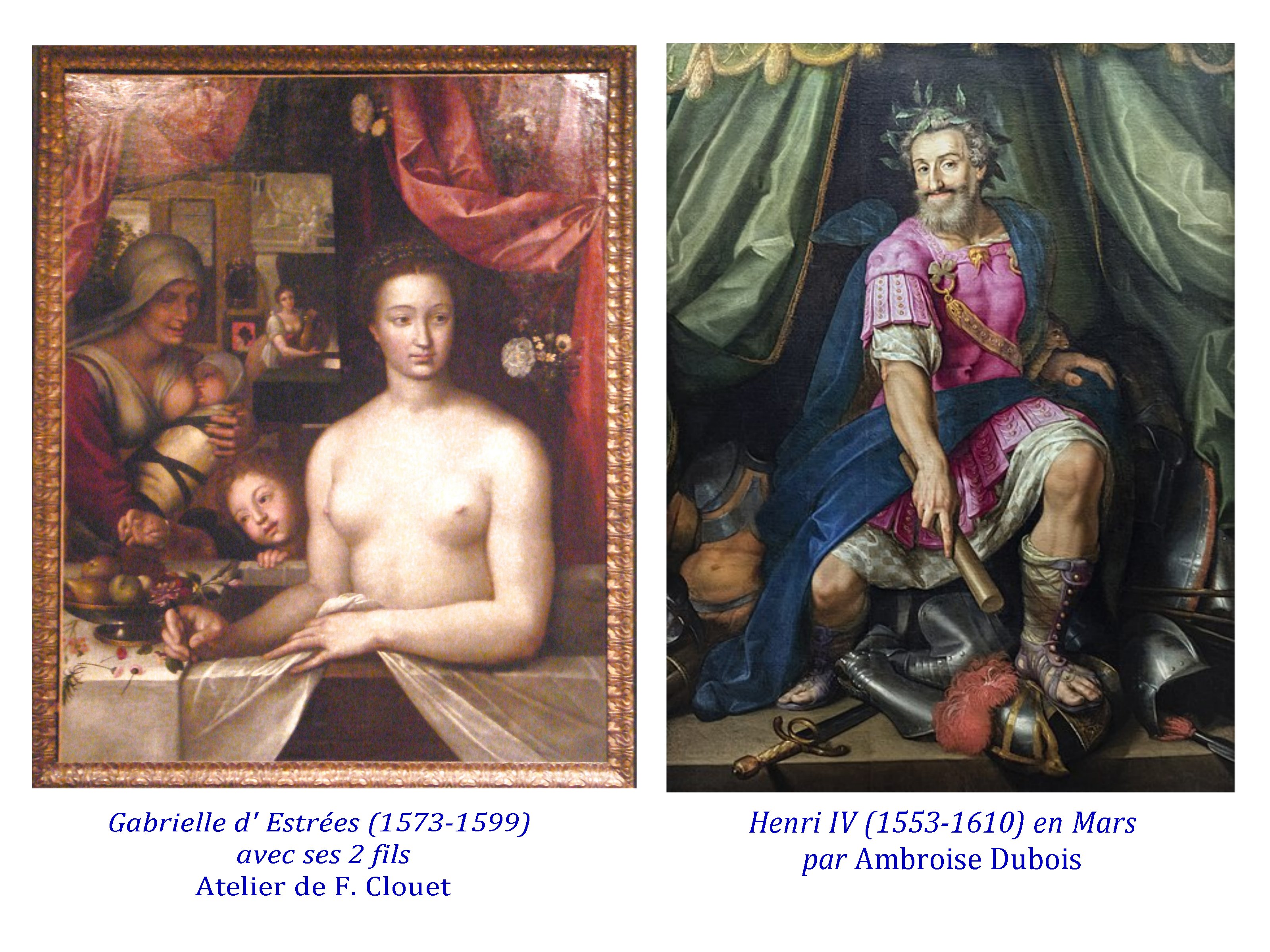 Rets un art de spectacle, de plaisirs, de raffinements autour de figures féminines idéalisées comme des ectoplasmes désincarnés, telles Diane de Poitiers et Gabrielle d’ Estrées. Les maîtresses des rois, pendant que leurs mères et/ou femmes sont de véritables légendes de force et de puissance ( Jeanne d’ Albret, Catherine de Medicis, Marguerite de Navarre et Marguerite de Valois puis enfin Marie de Medicis). Les valses de conversions religieuses, les empoisonnements, les assassinats se combinent avec la pratique qui se répand de Châteaux somptueux de plus en plus éloignés de la « populace et de Paris.