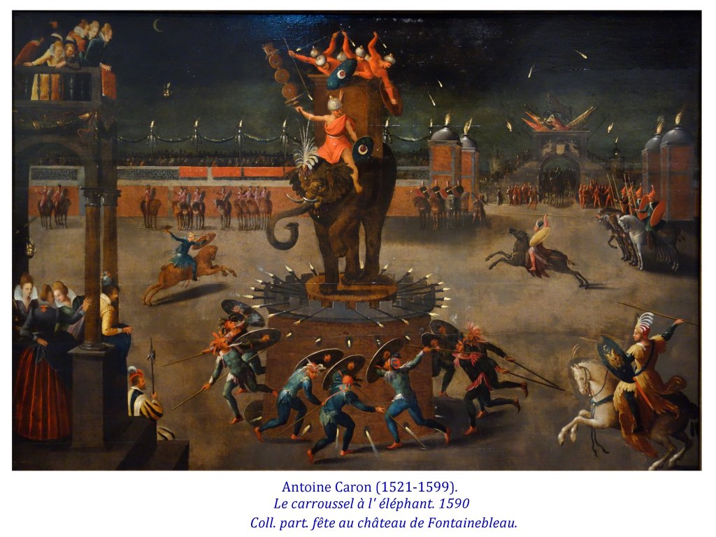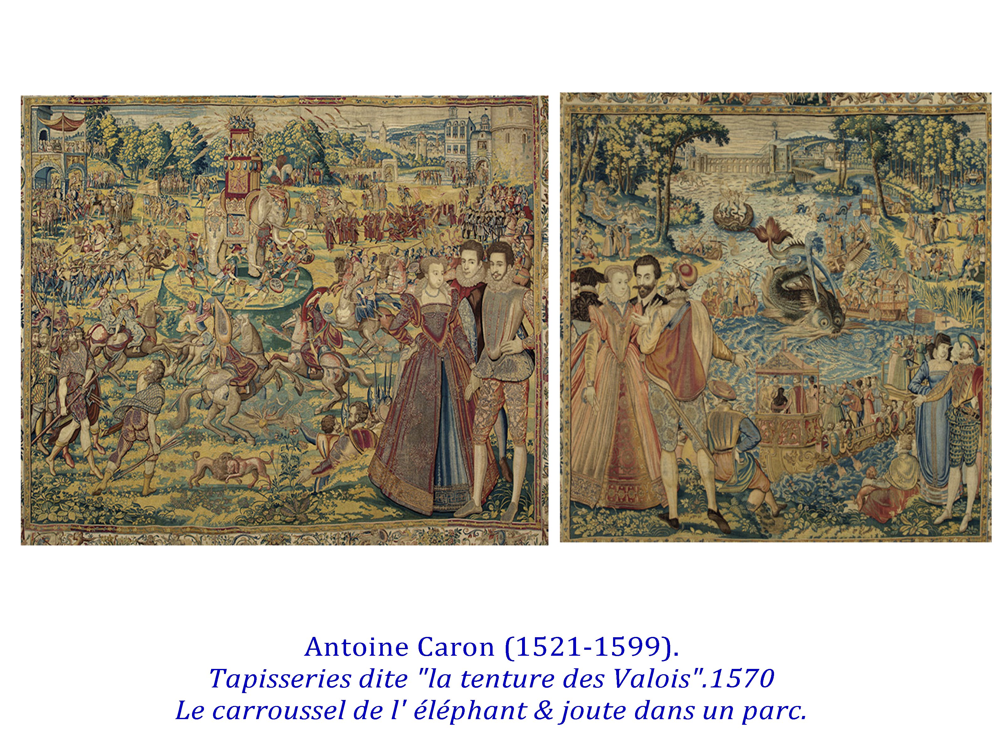 Passer de l’idéalisme néo-platonicien de Vinci aux extravagances picturales érudites d’ Antoine Caron en quelques décennies est ce qui pourrait définir ce 16e siècle français. Une transition chaotique, sanglante, romanesque ( Alexandre Dumas) autour de personnages épiques.