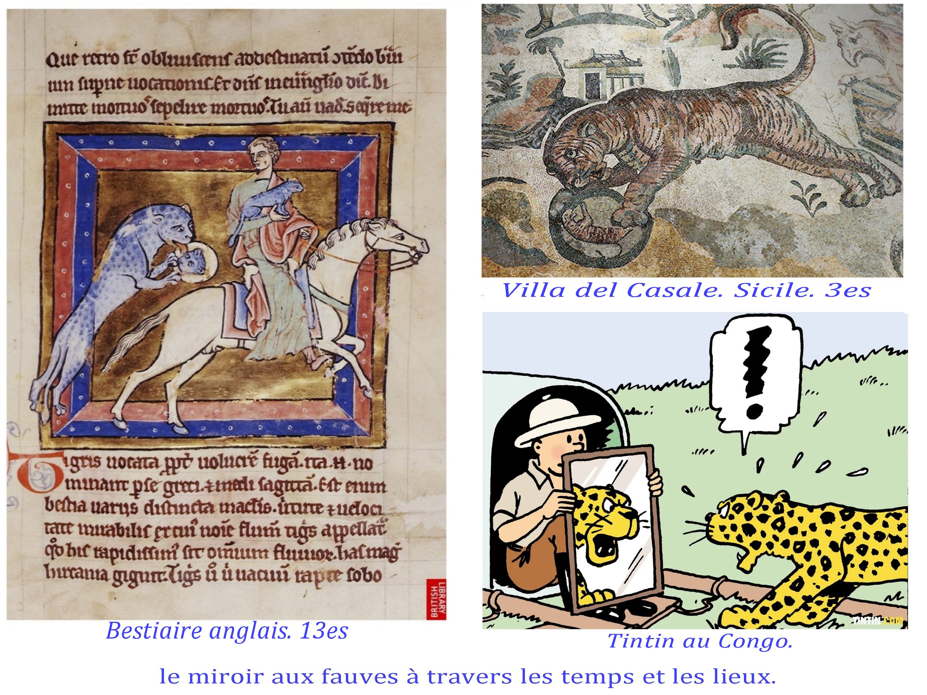 Le miroir est aussi associé à la tromperie et la ruse, comme par exemple dans la capture des petits tigres! C’est aussi le miroir de l’espiègle ( Eulen-spiegel : miroir aux alouettes).