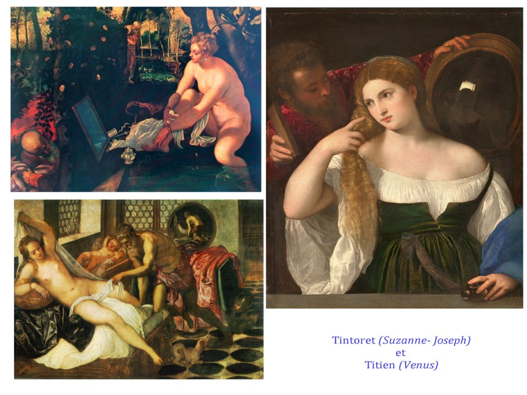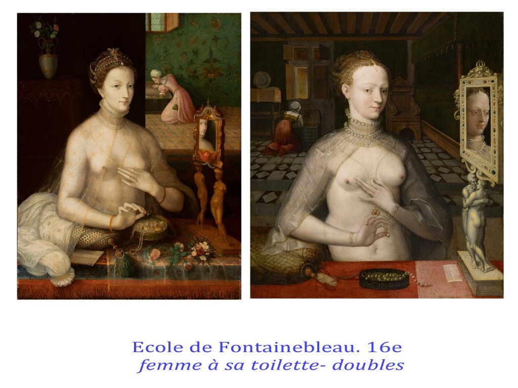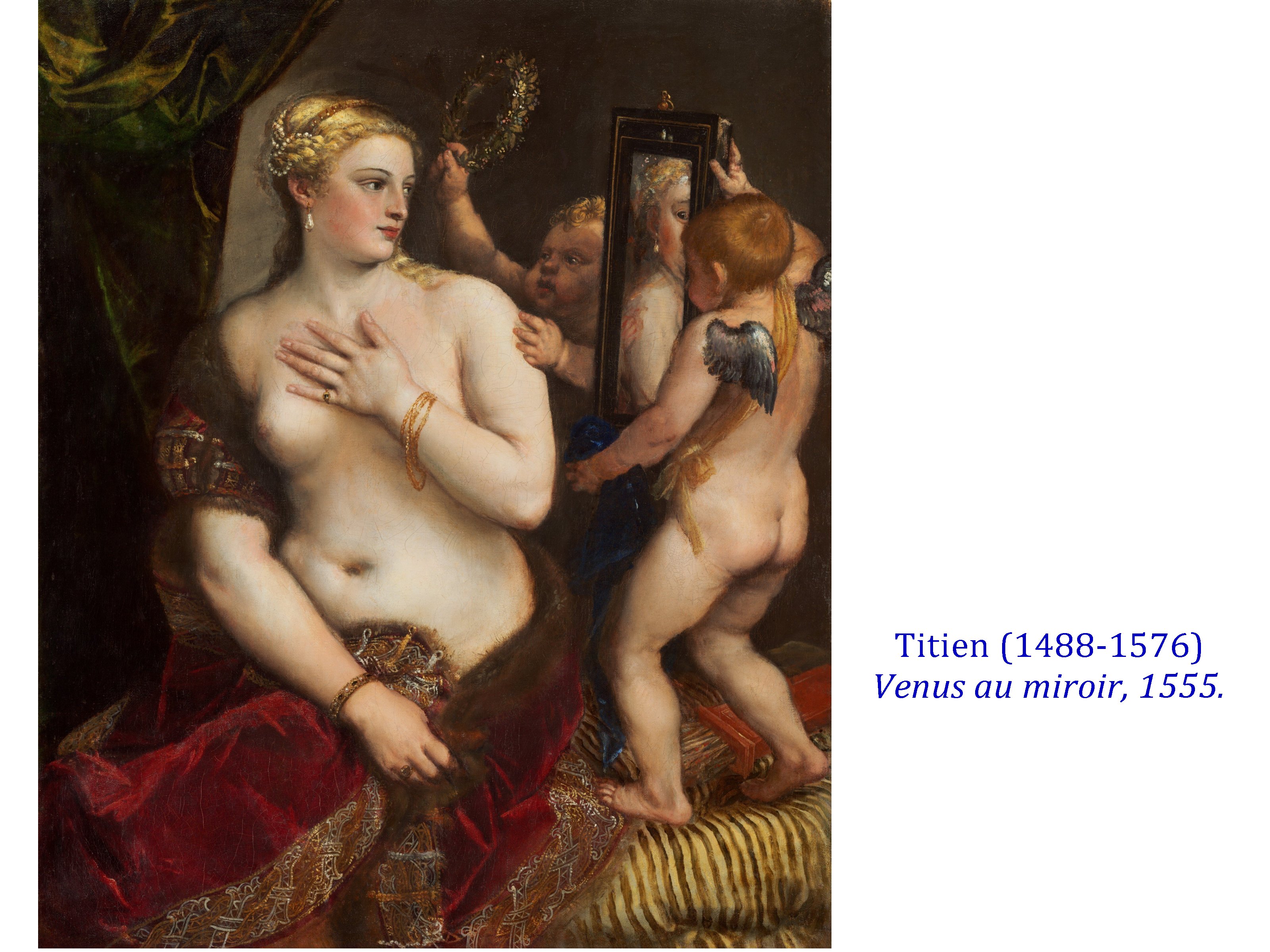 Les miroirs rectangulaires, à partir ( à peu près) de la Renaissance, ne sont plus, ces miroirs dits « de sorcière » convexe, en perspective panoramique et savante, agrandissant l’espace, mais des plans rectangulaires, véritables doubles des images peintes. Le miroir, avec la fenêtre, devient l’un des modèles absolus de la peinture, comme le théorise Vinci. Imiter le miroir est l’une des visées des peintres idéalistes de cette Renaissance désireux d’imiter au plus près le phénomène le plus spirituel qui soir, à savoir la lumière, la vue.