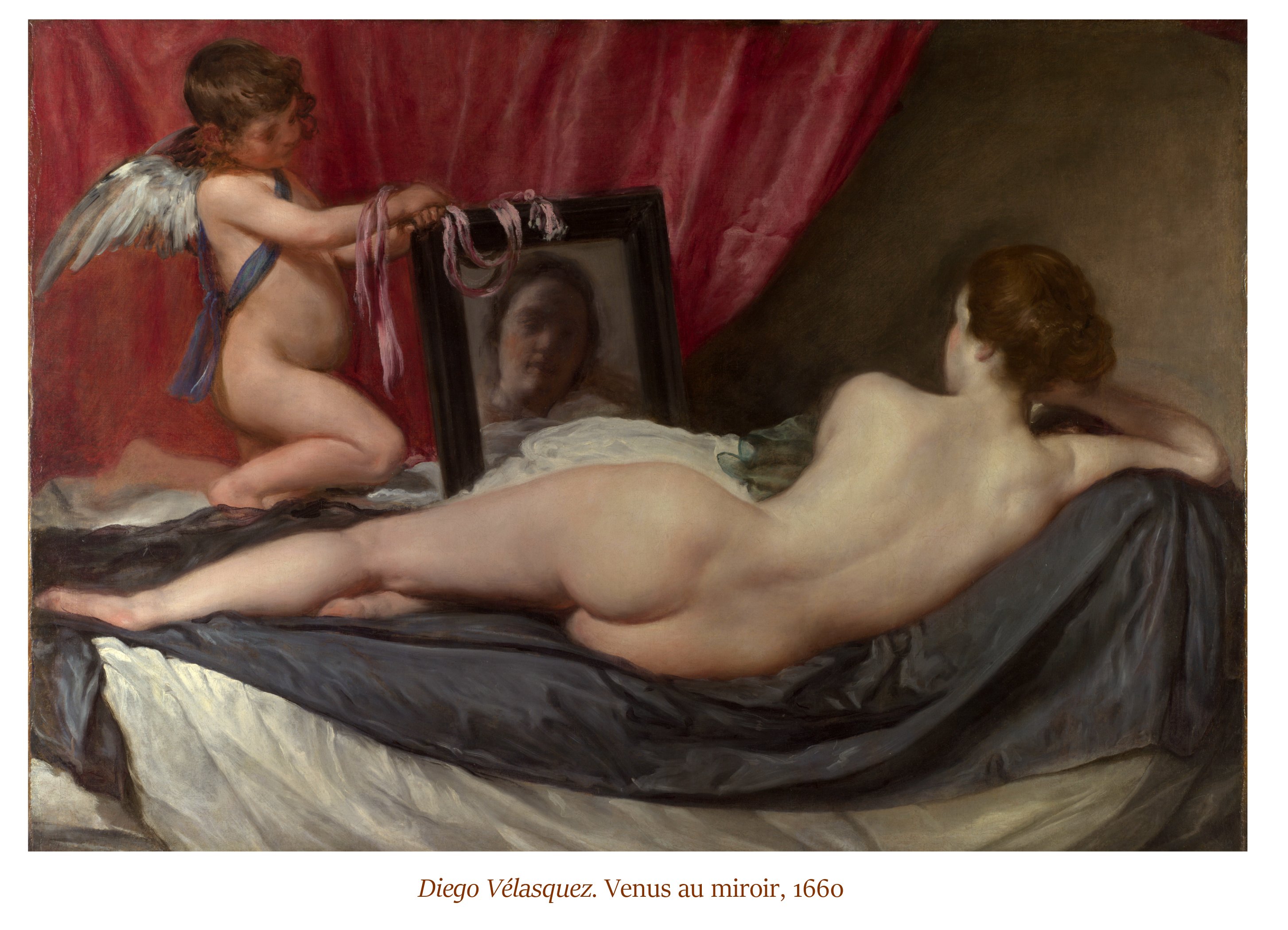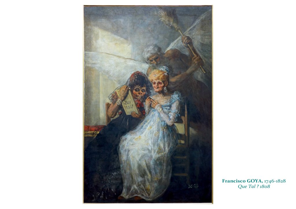 Goya, dans sa période misanthrope et misogyne, nous suggère la vérité que renvoie le miroir aux femmes âgées. l’illusion n’est pas le miroir, mais la parure.