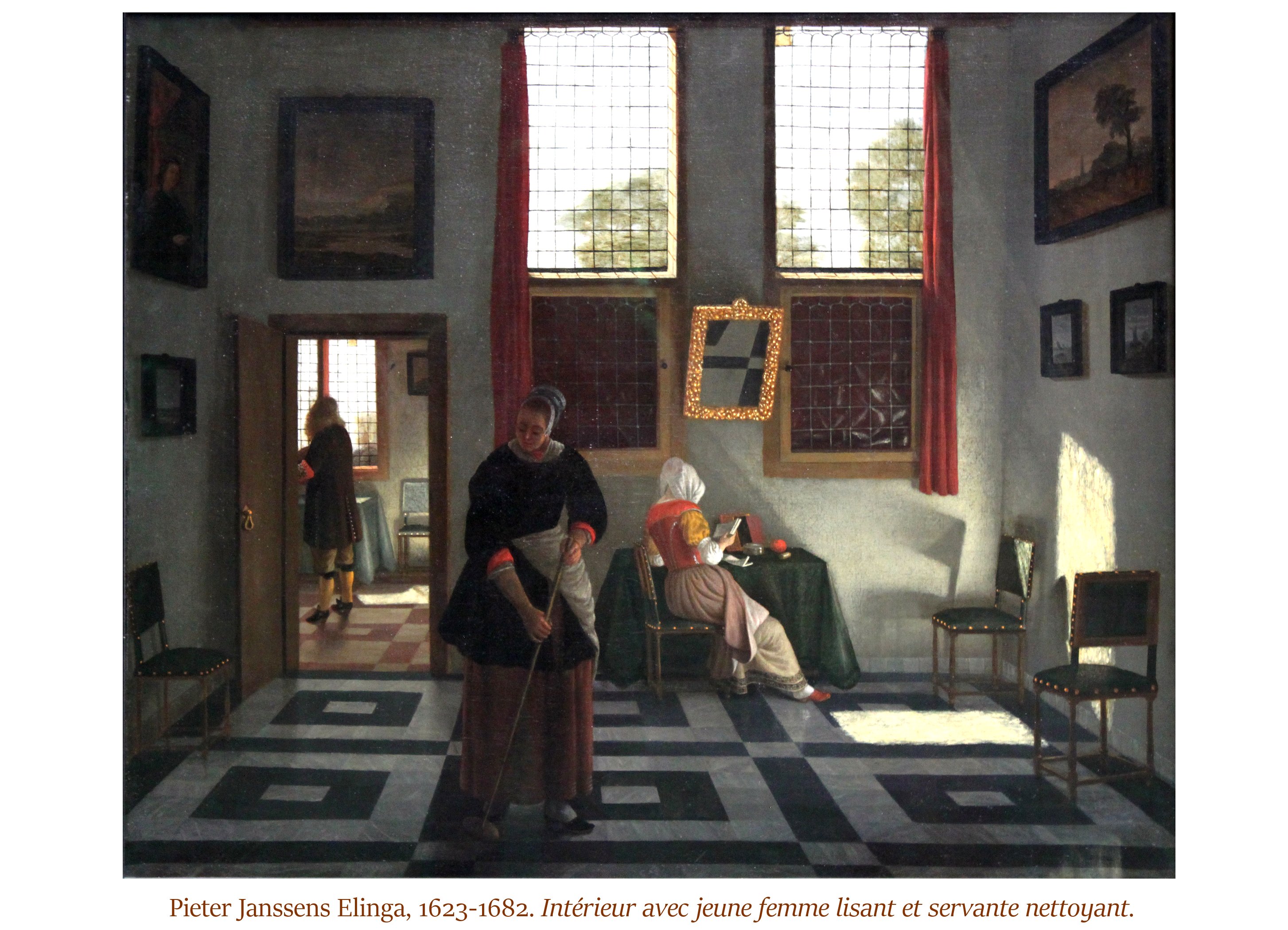 Vermeer entre autres, joue du reflet pour ouvrir les espaces confinés et suggérer des croisements savants de regards. Par ailleurs, il utilisa sans doute la camera obscura, installation fonctionnant avec optique , miroir et verres dépolis.