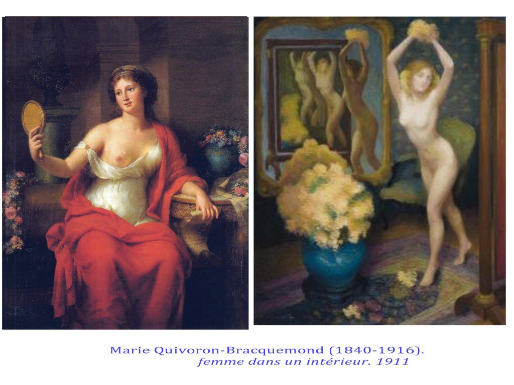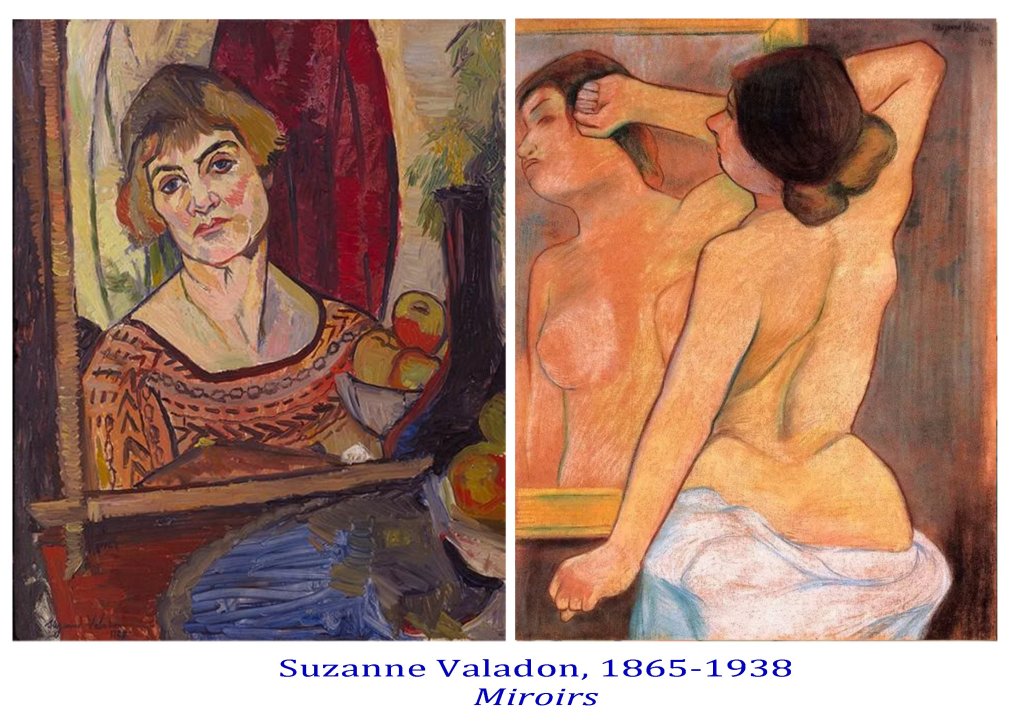 Suzanne Valadon, elle, reprend le miroir comme objet initiatique du passage de la fillette à la jeune fille pubère, puis ensuite comme révélation de la vérité dans son autoportrait.