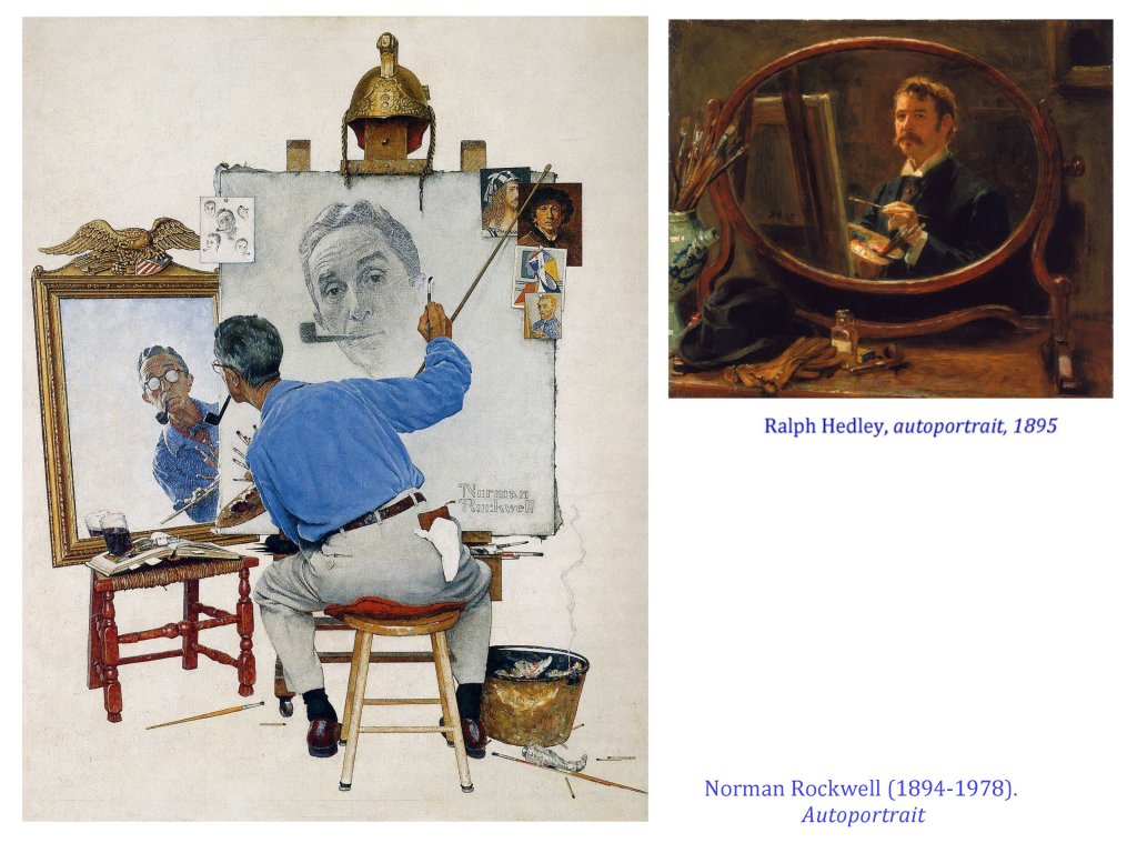 Comme petit objet de toilette, on le voit aussi comme introspection, mais aussi modèle pour les autoportraits, et ce dès le Moyen-âge ( pas si moyen!) identifié aux portraits féminins, attachés au questionnement sur son apparence, question sans doute culturellement cantonnée aux femmes, soumises au regard.