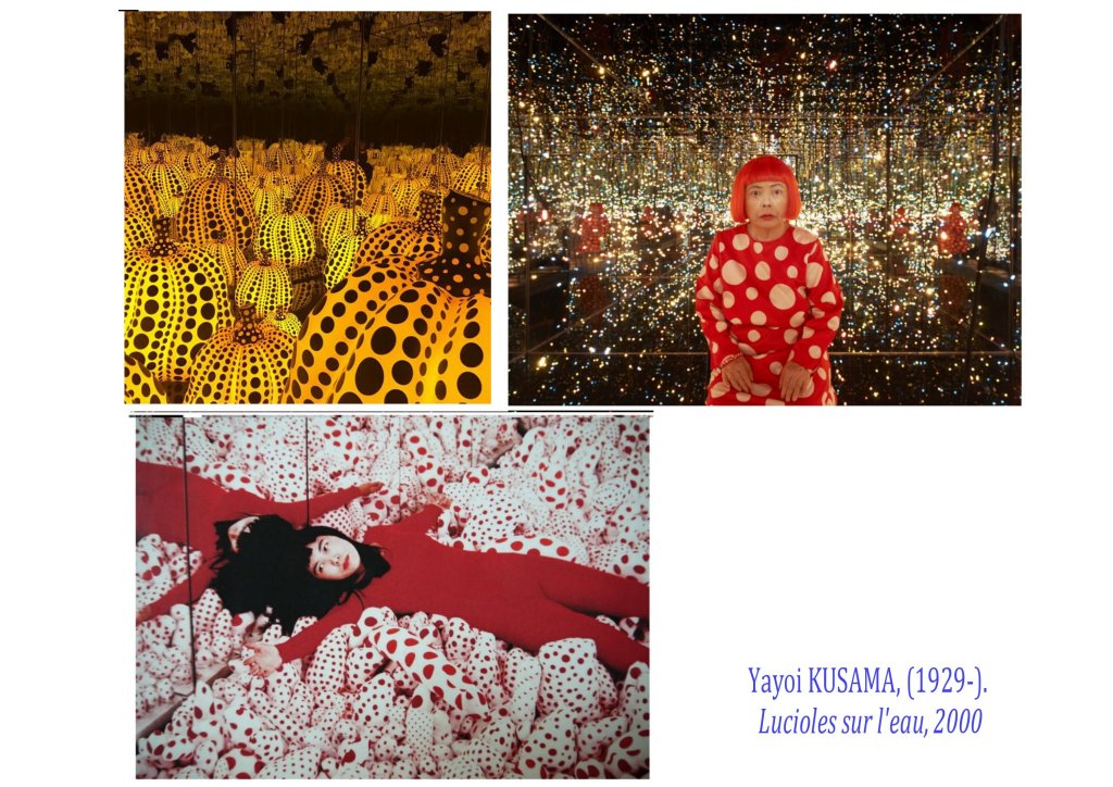 Dans les installations, Kusama et Kapoor, entre autres démultiplient les points de vue. Kusama, notamment, utilisant les jeux de miroirs pour se dématérialiser et conquérir une sorte d’infini, ce qui est cohérent avec l’ensemble de son œuvre.