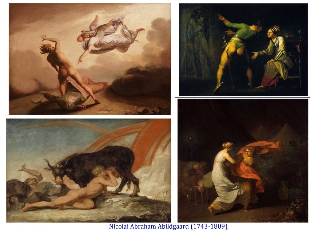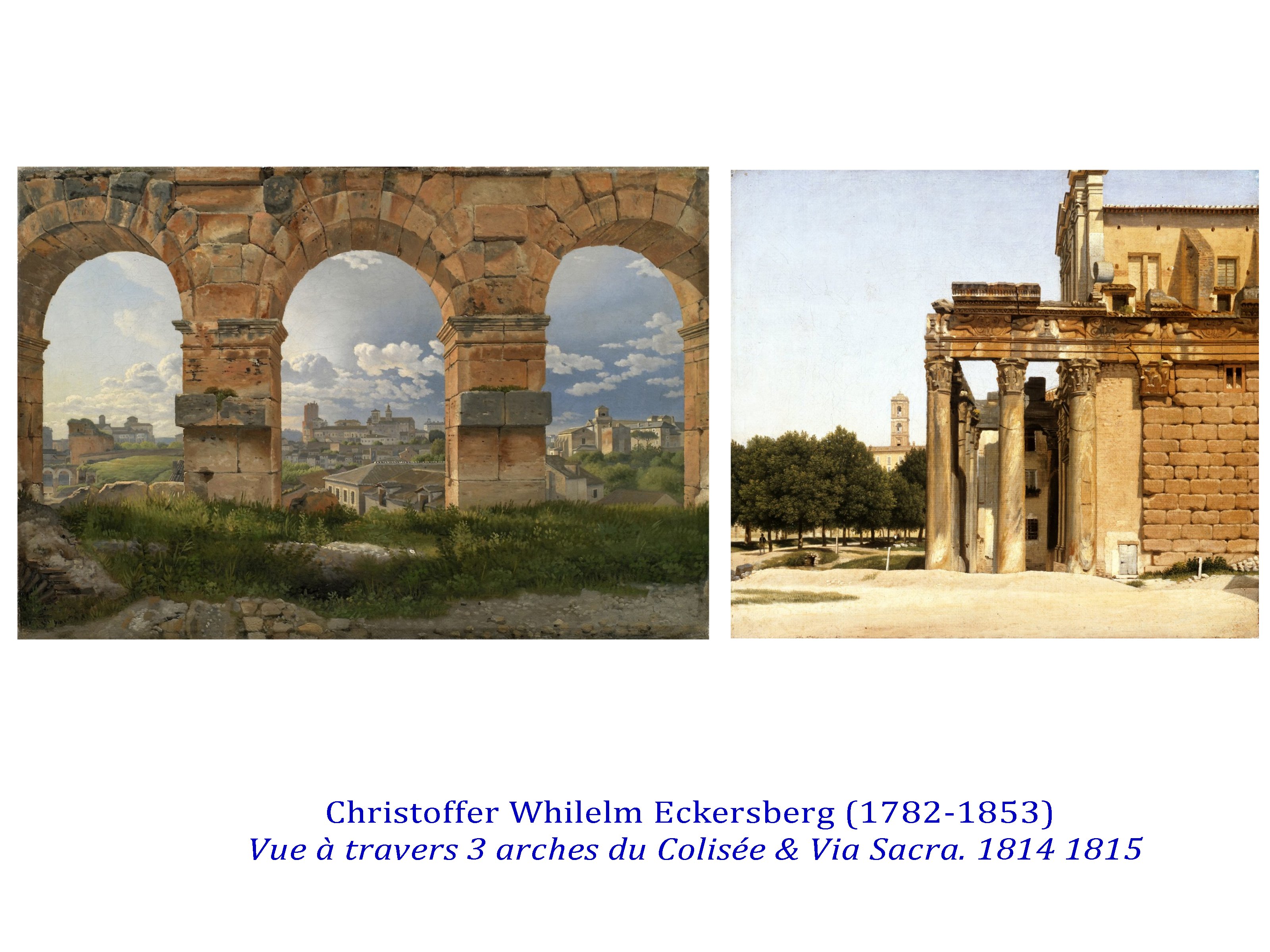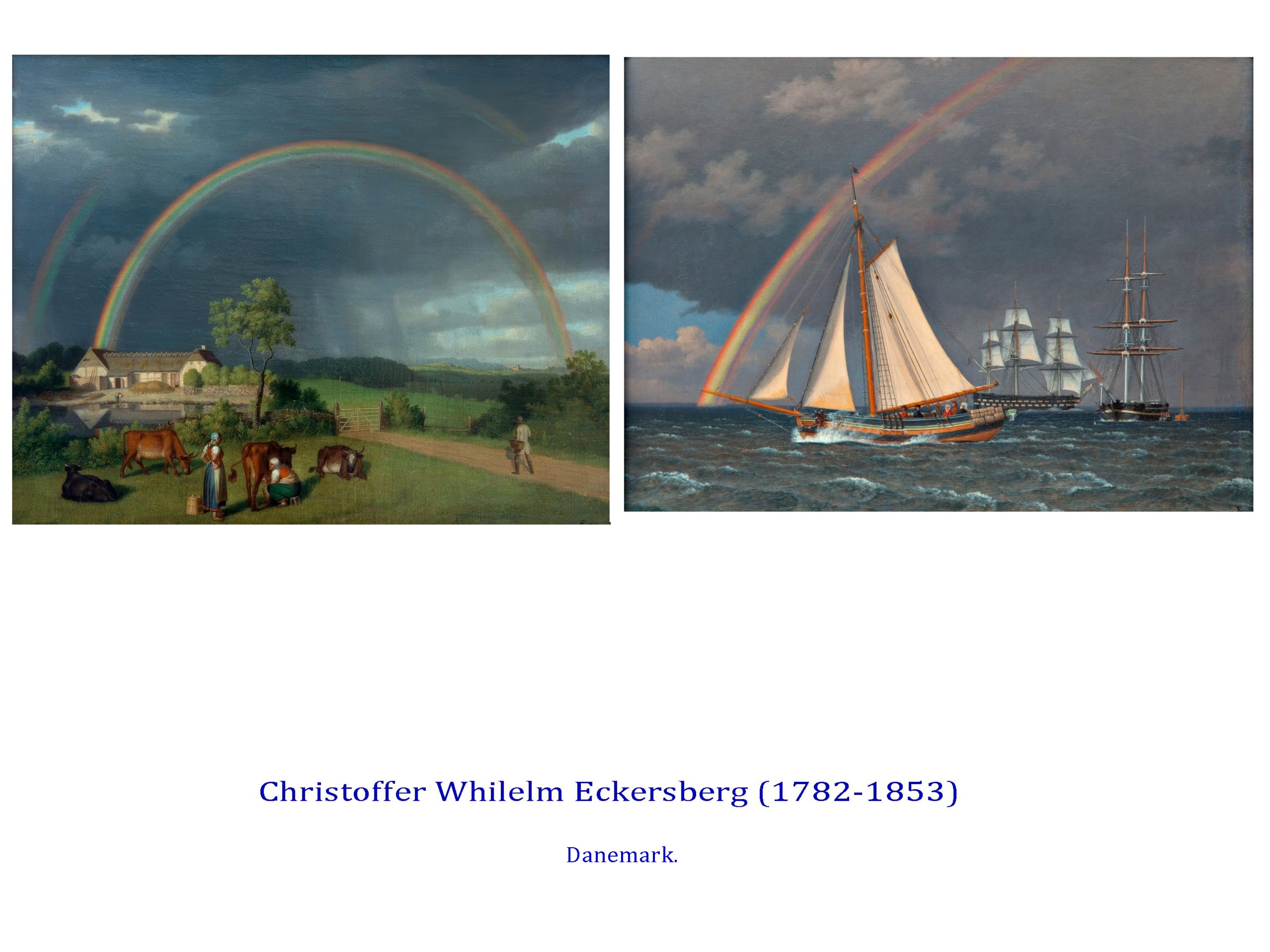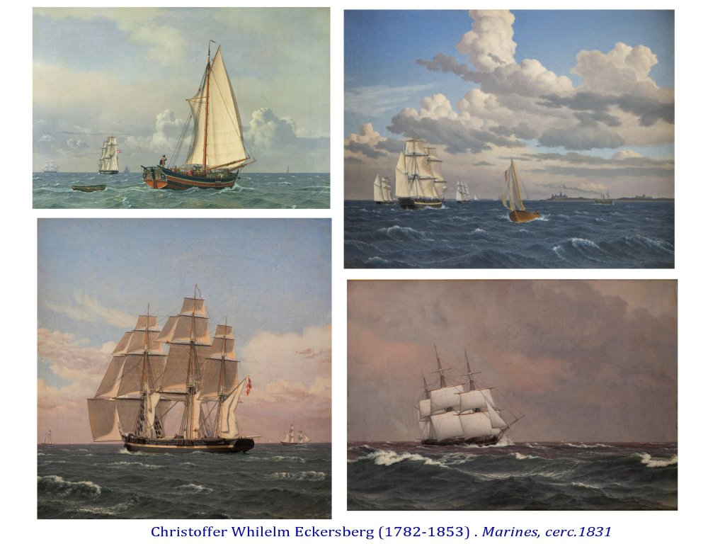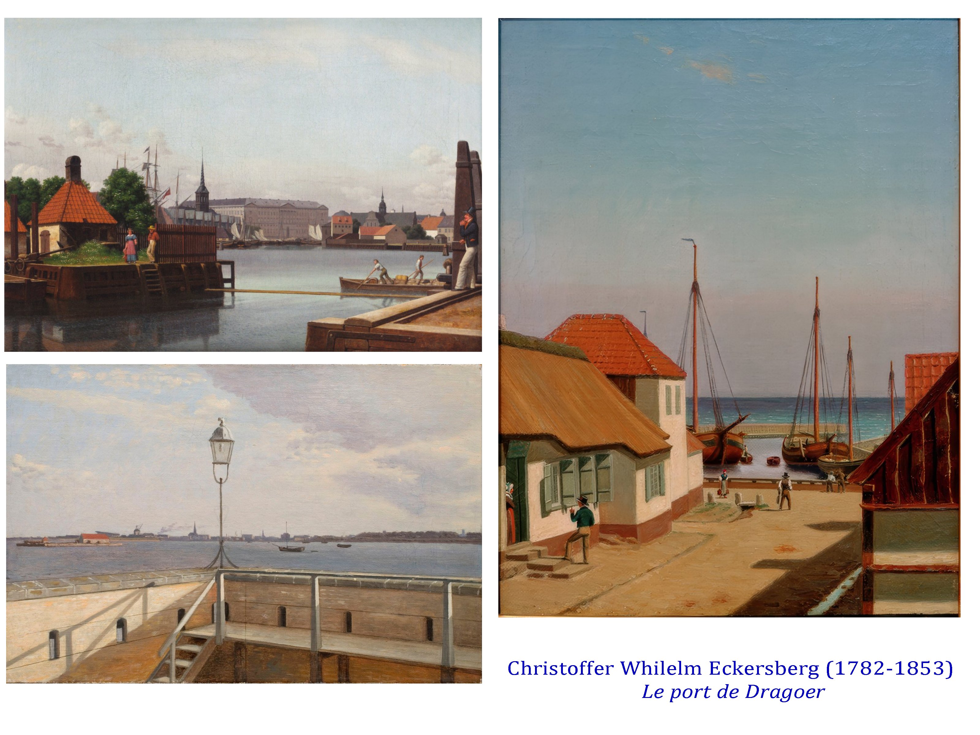 C. P. Eckersberg serait plutôt dans une quête réussie d’apaisement, toutes ses peintures expriment une plénitude, une monumentalité tranquille. Il semble avoir trouvé sa place dans un monde assez serein, comme ses cieux, et ses navires de loisirs. Il est également surprenant, dans ses scènes de rue, comme prises sur le vif. témoin d’une société vivante. Il anticipe les reportages et traite la question de l’instant bref, ce qui sera l’un des motifs des impressionnistes.