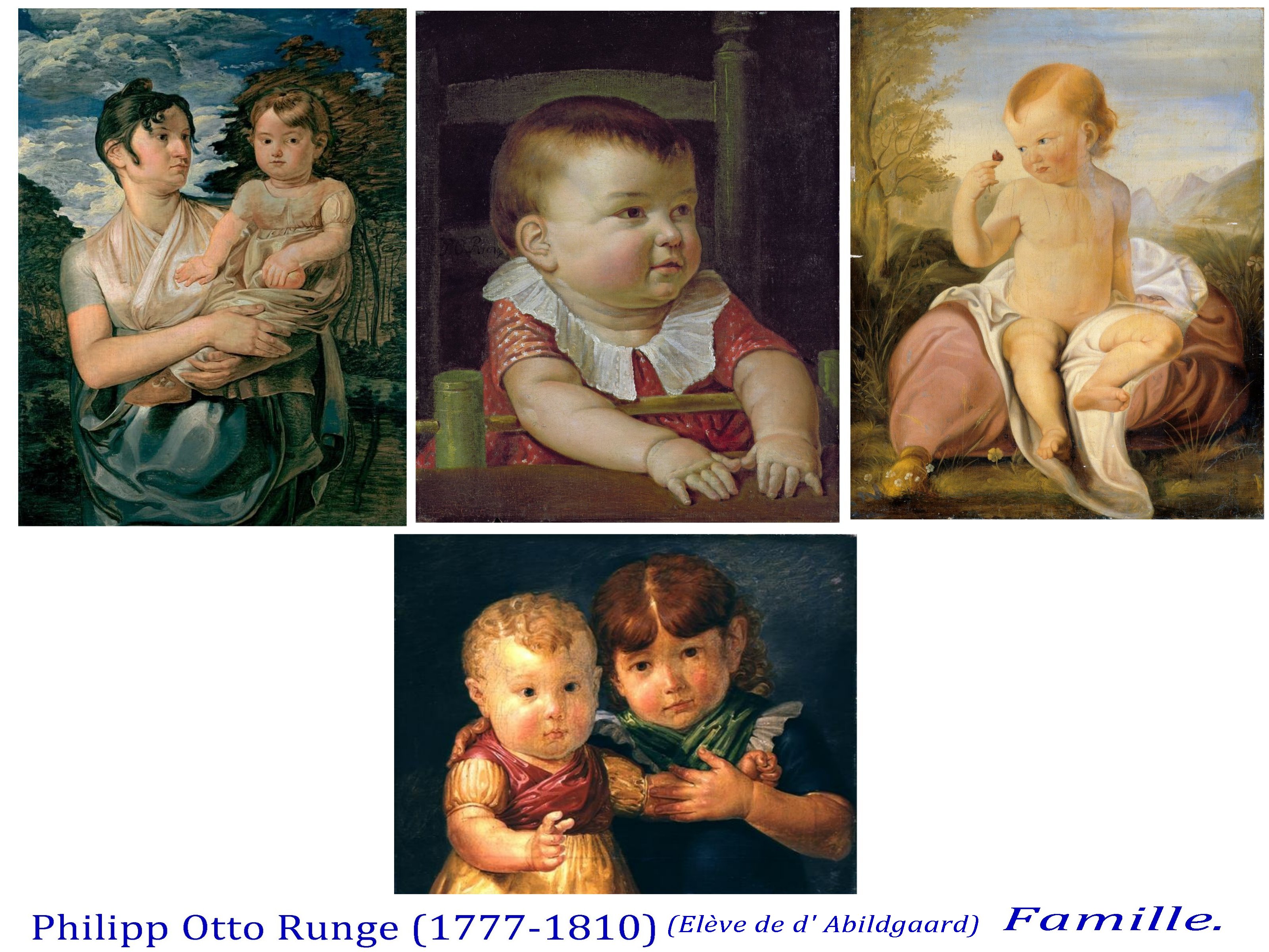 P. O. Runge est plus refermé sur l’introspection, le spleen, l’inquiétude existentielle. Le monde l’enfance, très dense, voire inquiétant, est bien ici traité, comme l’un des aspects du thème de « l’ailleurs », propre aux romantiques.
