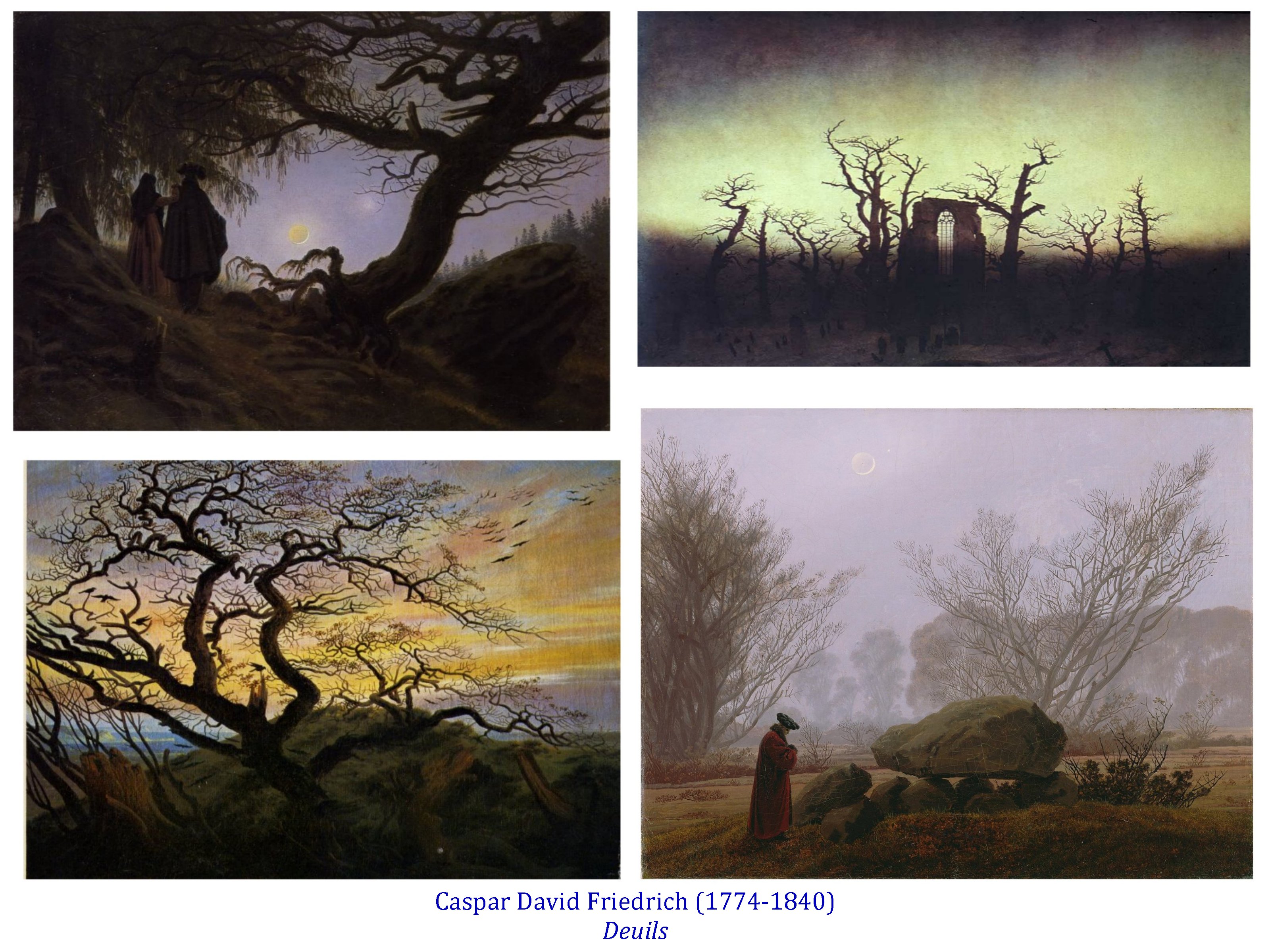 Pour Friedrich, on peut se référer à l’article sur Turner, ainsi que celui sur Géricault. Il est question du romantisme et des spécificités, en Angleterre, en France et en Allemagne.