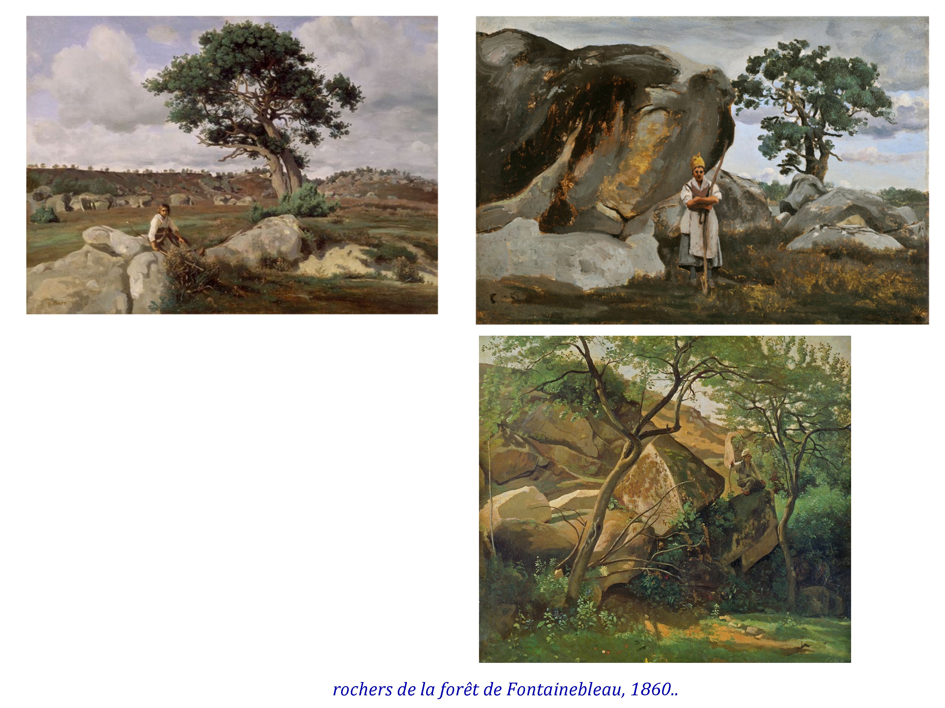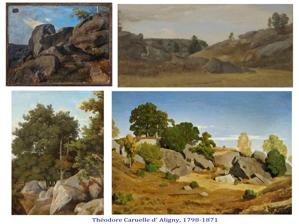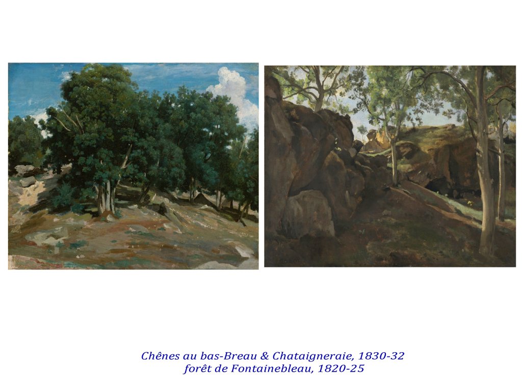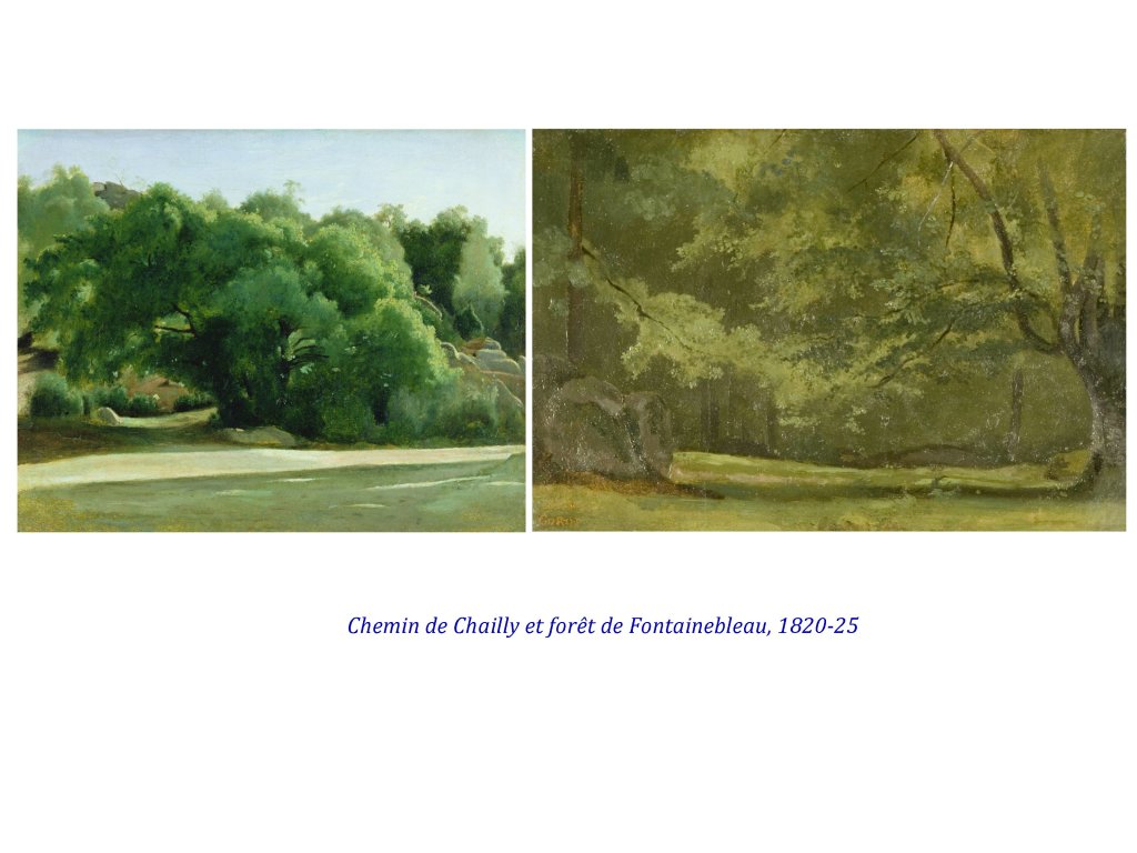 Accessible depuis Melun (relié à Paris par le train, assez vite au 19e), par la diligence, Barbizon et Chailly, sont les villages permettant aux peintres d’aller explorer les alentours, soit les plaines agricoles au nord, soit la forêt et ses impressionnants dénivelés ( gorges d’ Apremont par exemple), dès Barbizon.