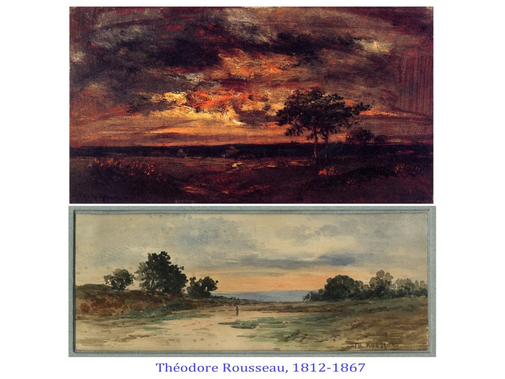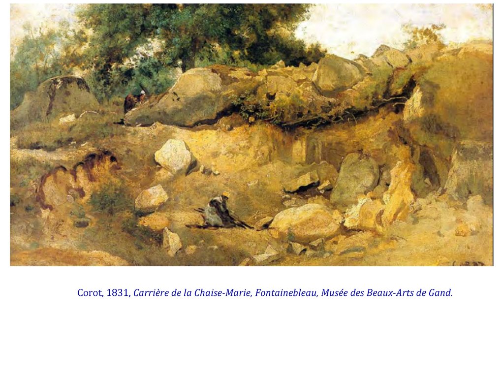 Le paysage, devient un sujet propre. Ce qui était déjà acquis dans les Pays-Bas, dès le 17e siècle, devient une pratique de plus en plus appréciée, des artistes, comme d’une nouvelle clientèle, classe moyenne urbaine. Ilds et elles ont en commun de comprendre que le 19e siècle est en pleine révolution culturelle et technologique, urbanisation, exode rural ( à ses débuts), industrialisation violent, machinisme, pollution, technologisme, idéologie triomphante de la domination et de l’exploitation de tout le vivant.