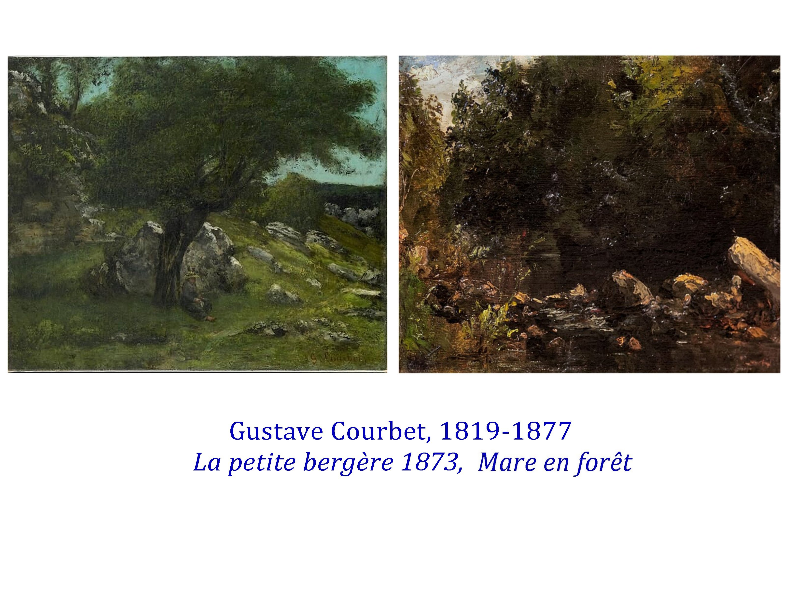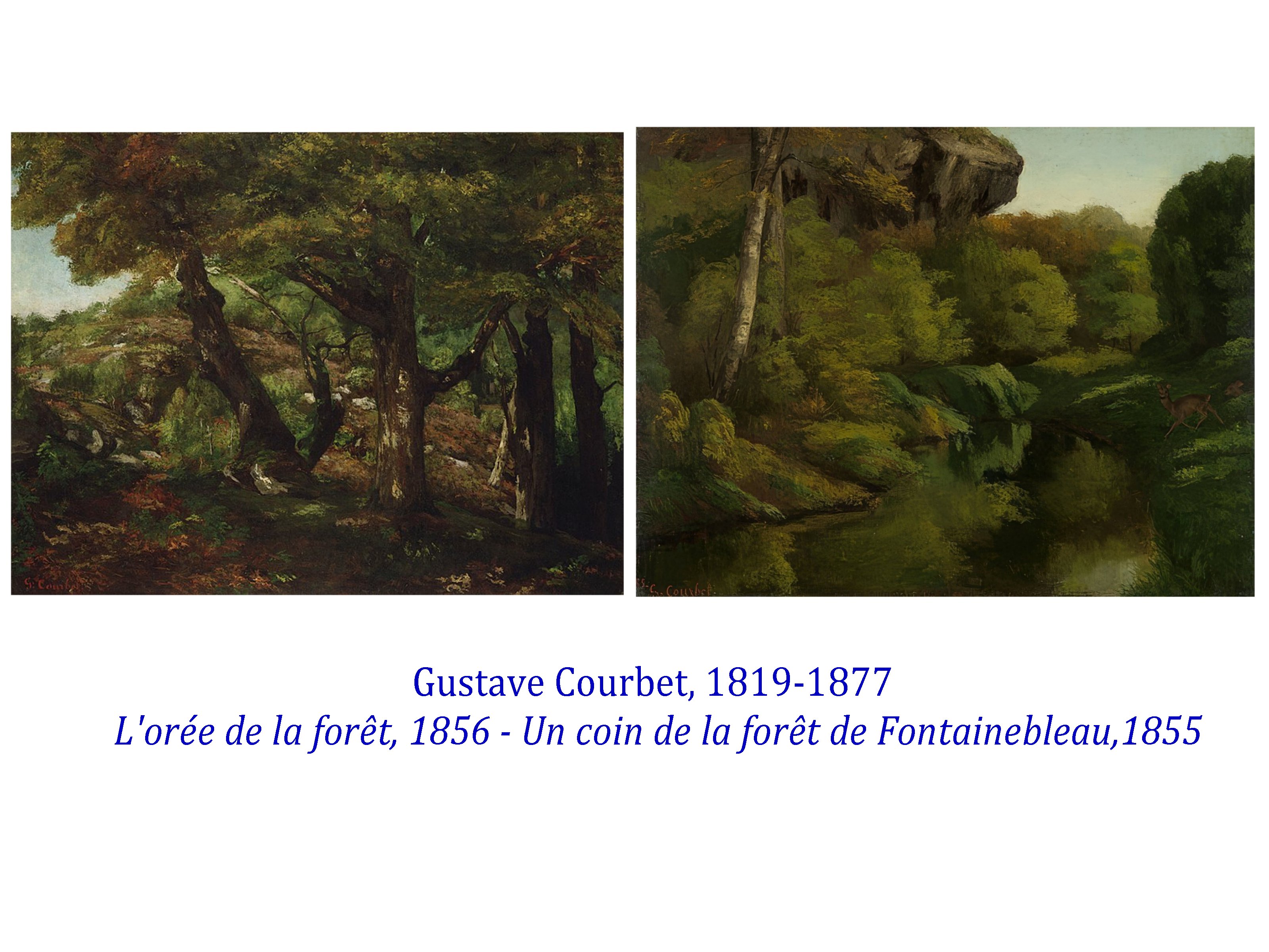 Bien entendu, ces 2 artistes ne sont pas seuls, mais ils imposent lentement leurs points de vue sur la scène artistique parisienne. Courbet à sa façon ( passant aussi par Fontainebleau) relaie cette nouvelle subjectivité et la puissance du quotidien, du vrai, de la réalité, comme ce qui précisément n’est pas le spectacle, la séduction superficielle, l’illusion.