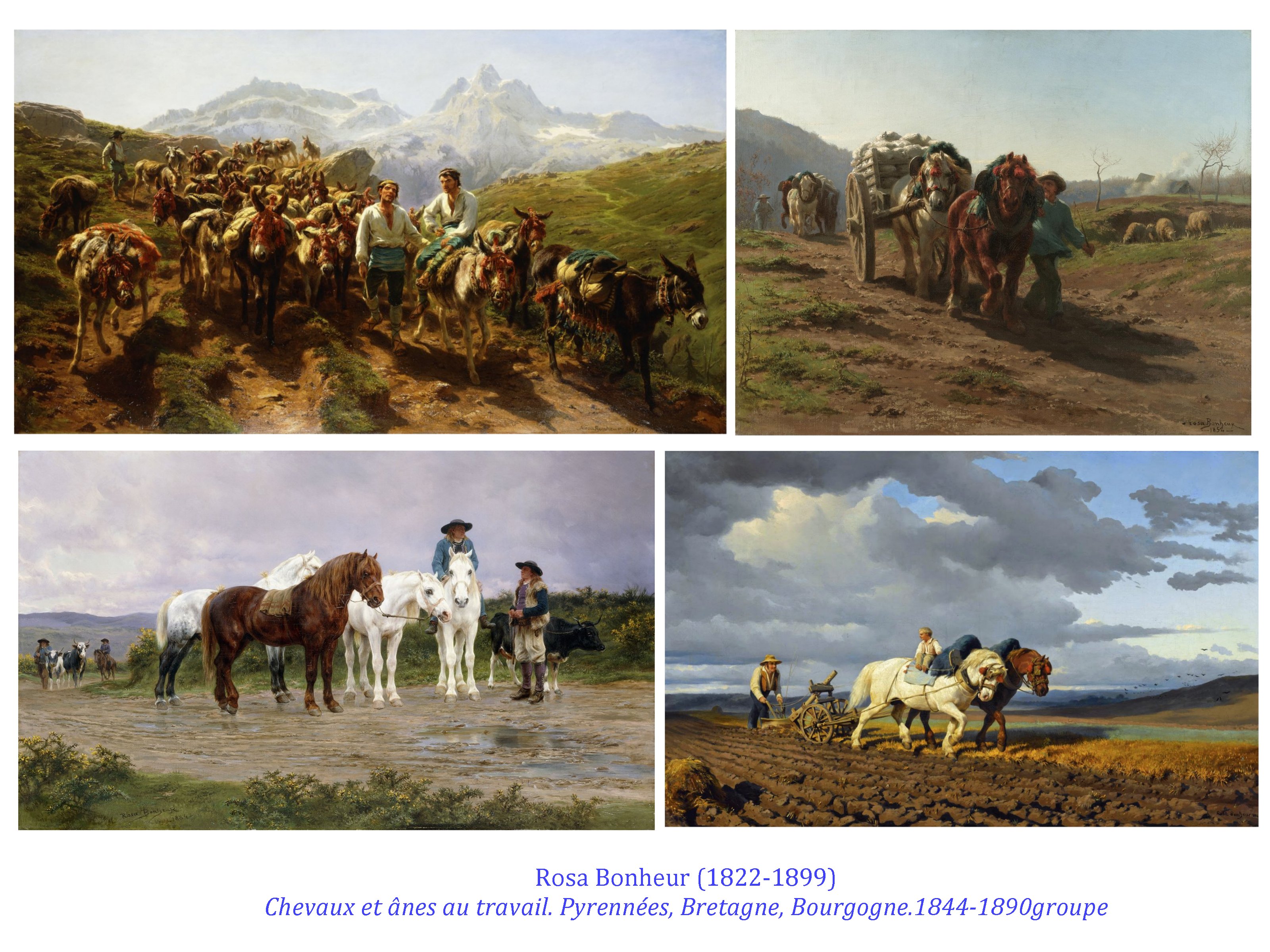De son côté, plus sensible au monde animal qu’aux aléas des paysages, Rosa Bonheur, à Thomery, révèle le mystère fascinant des grands mammifères, mais participe aussi à ce regard qui se détourne du spectacle, du bruit des cités, des foules et des encombrements pollués.